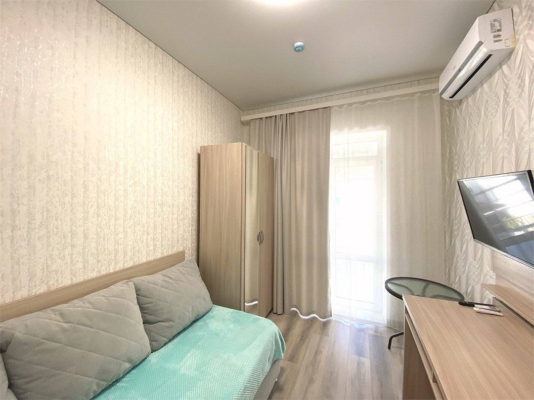 телевизор, Wi-Fi, интернет, кондиционер, светильник, фен, обогреватель, ванная комната, душевая кабина, санузел, банные принадлежности, банные полотенца, косметические средства, балкон, полутораспальная кровать, тумбы, шкаф для одежды, вешалки, зеркало, комод, звуконепроницаемые стены и окна, чайник, унитаз, отопление, душ, плиточное покрытие, вид во двор, ламинат, туалетный столик, стол, туалетные средства, туалет, сплит-система, принадлежности для барбекю, сушилка для белья, телевизор с плоским экраном, мини-холодильник, москитная сетка, электронный консьерж 24/7, онлайн-регистрация до заезда, уборка номера, услуги прачечной (платно), вешалки-плечики, мыло, открытый шкаф, прачечная (за дополнительную плату), можно с питомцамиВ гостиничном номере