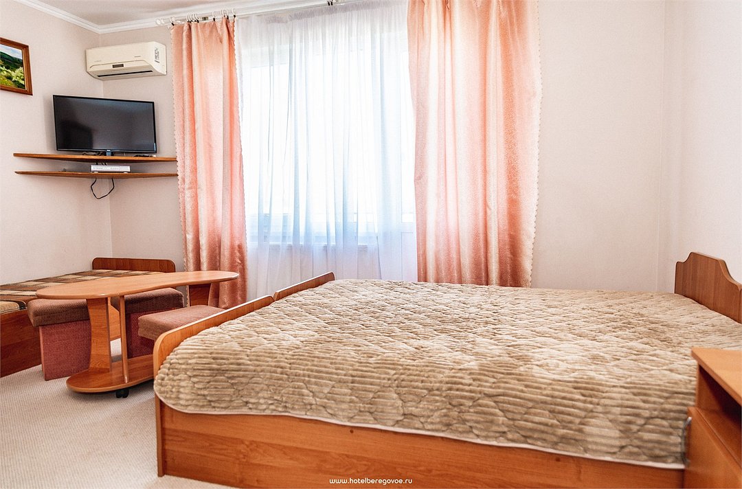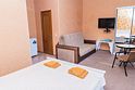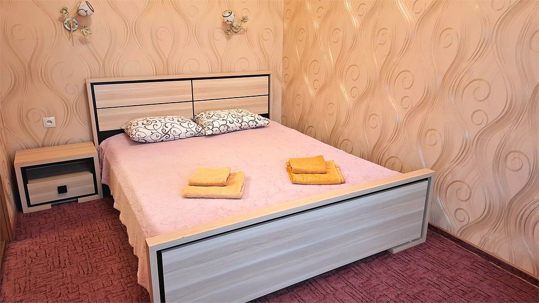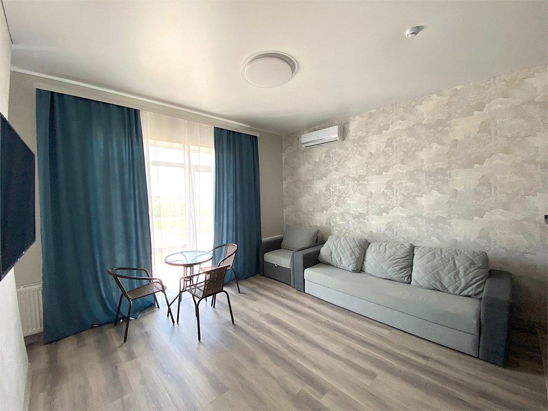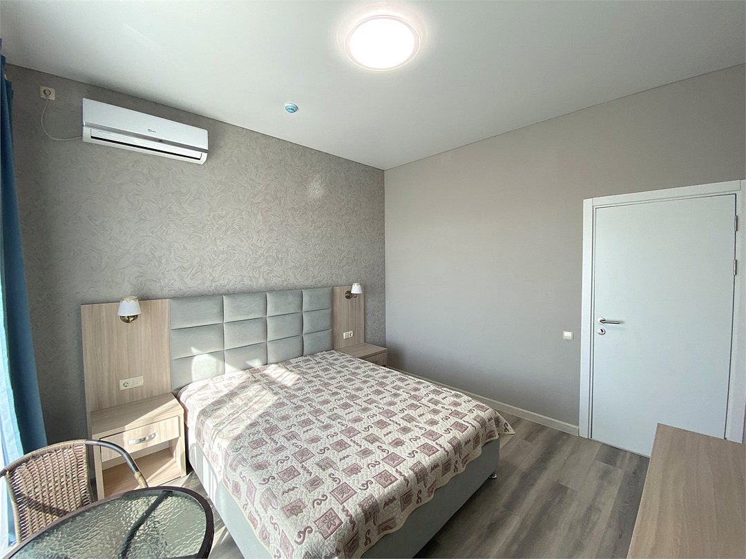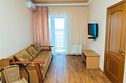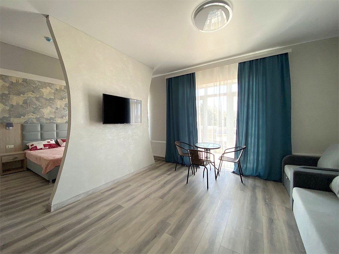 Номер Двухкомнатный Стандарт - это уютный номер, оснащенный всем необходимым для комфортного проживания 2-3-4-5 гостей или семьи из 4 -5 человек. Оснащение номера: Две односпальные кровати, двуспальный диван, односпальное кресло, Кондиционер, Телевизор, Мини-холодильник, Шкаф для одежды, Фен, Электрочайник, Постельные, банные и пляжные принадлежности.Услуги и удобства