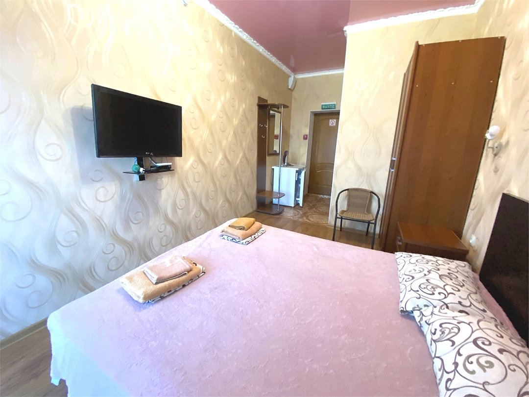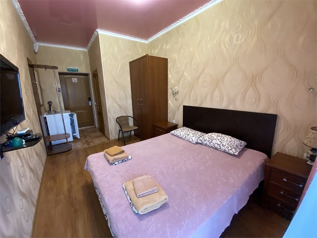 телевизор, спутниковое телевидение, Wi-Fi, интернет, холодильник, кондиционер, светильник, санузел, балкон, кровать «King size», двуспальная кровать, две односпальные или большая двуспальная кровать, тумбы, стулья, шкаф для одежды, вешалки, ковер, унитаз, душ, плиточное покрытие, вид во двор, стаканы, столовые приборы, стол, тумба, туалет, мангал, сушилка для белья, цифровое тв, москитная сетка, уборка номера, услуги прачечной (платно), частный двор, мыло, можно с питомцамиВ гостиничном номере