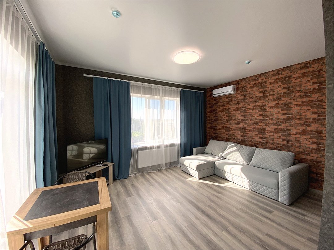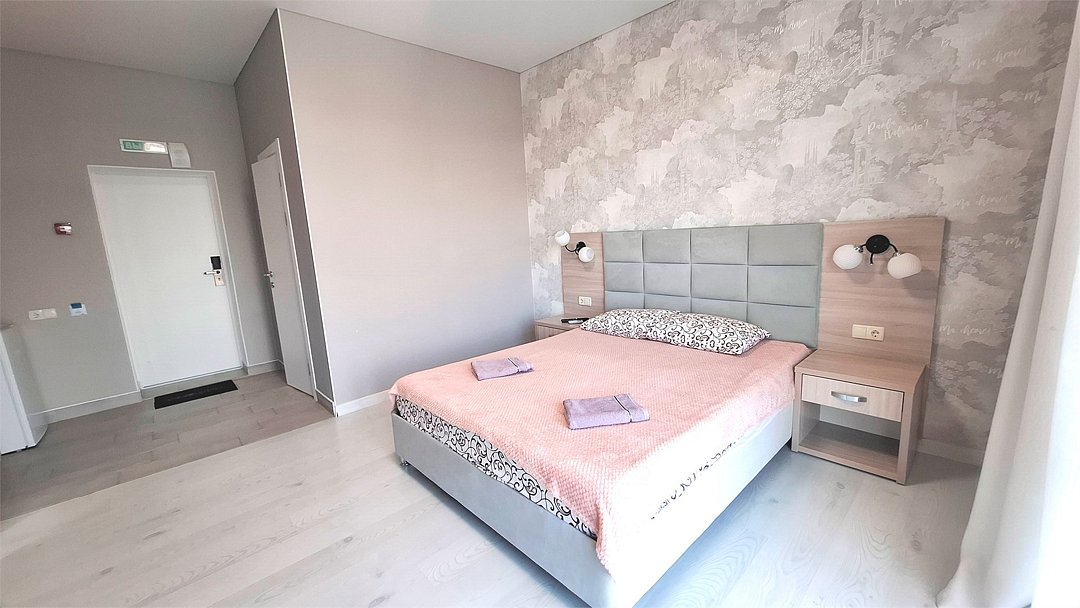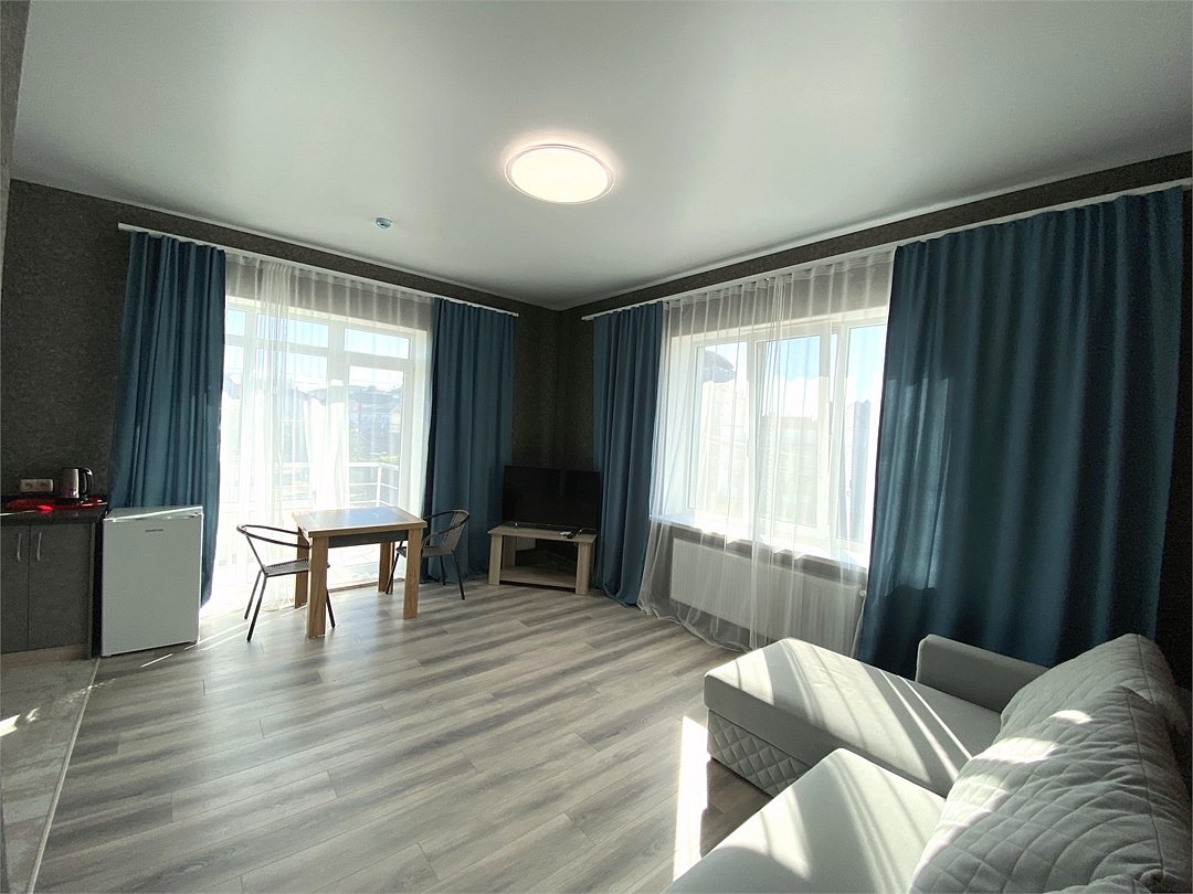 Двухкомнатный номер «Комфорт» с балконом Просторный и светлый номер, состоящий из двух комнат, — идеальное решение для размещения 2–4 гостей или семьи из четырёх человек. Уютный дизайн, продуманная планировка и собственный балкон создают атмосферу домашнего уюта и обеспечивают все условия для комфортного отдыха. Почему стоит выбрать этот номер: • две отдельные зоны — для сна и отдыха, что особенно удобно при размещении семьи или компании; • достаточно спальных мест: двуспальная кровать и двуспальный диван; • собственный балкон — прекрасное место для утренних чаепитий или вечерних посиделок на свежем воздухе; • функциональное пространство, где всё необходимое находится под рукой; • светлая современная отделка, визуально расширяющая пространство и создающая ощущение лёгкости. В номере предусмотрено: • двуспальная кровать; • двуспальный диван; • кондиционер; • телевизор; • мини холодильник; • шкаф для одежды; • фен; • электрочайник; • постельные принадлежности; • банные принадлежности; Этот номер — удачное сочетание простора, функциональности и уюта. Здесь вы сможете по настоящему расслабиться, провести время с семьёй или друзьями и сделать ваше пребывание в отеле по настоящему комфортным и запоминающимся.Услуги и удобства
