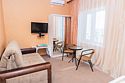 Предлагаем Вашему вниманию 2-х местный номер полулюкс в уютном нашем 4 корпусе "Крымское Чудо" который находиться за 350м от моря и 400м от основного корпуса с бассейном, который идеально подходит для спокойного семейного отдыха вблизи Черного моря. Комфортные номера с кондиционером, частный двор, настольный теннис, мангал, тень от виноградной лозы - всё, что нужно для комфортного отпуска. При бронировании данного номера по тарифу с питанием - услуги питания предоставляются в Главном Корпусе отеля Лазурный Берег ( 400 метров ).Услуги и удобства