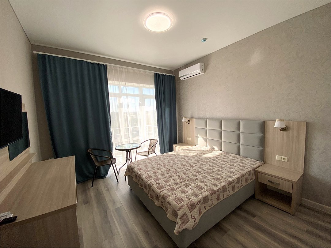 Предлагаем Вашему вниманию 2-х местный номер стандарт в уютном нашем 4 корпусе "Крымское Чудо" который находиться за 350м от моря и 400м от основного корпуса с бассейном, который идеально подходит для спокойного семейного отдыха вблизи Черного моря. Комфортные номера с кондиционером, частный двор, настольный теннис, мангал, тень от виноградной лозы - всё, что нужно для комфортного отпуска. При бронировании данного номера по тарифу с питанием - услуги питания предоставляются в Главном Корпусе отеля Лазурный Берег ( 400 метров ).Услуги и удобства