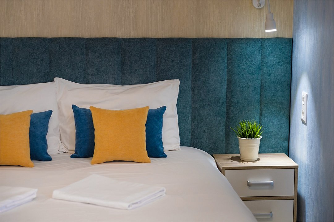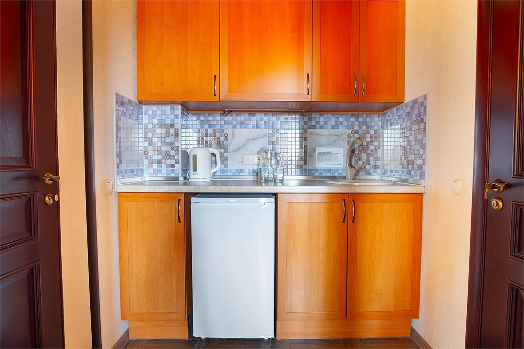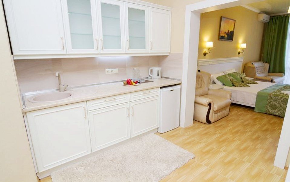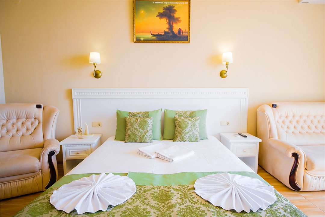 В номере: - Кровать (двуспальная или две односпальные) - Раскладной диван и раскладное кресло - Кондиционер - Сигнализация - Звукоизоляция - Сейф - Шкаф-купе - Стол письменный и стул - Прикроватные тумбочки Кухонная зона: - Холодильник - Электрочайник - Посуда (минимальный набор) - Микроволновая печь (по запросу) - Питьевая вода в номере Санузел: - Душ - Туалет - Умывальник - Полотенца (банные и пляжные) - Мини-парфюмерия - Фен Услуги: - Частота уборки (1 раз в 3 дня или по требованию) - Смена постельного белья (1 раз в 3 дня или по требованию) Дополнительно: - Пол: плиточный (с подогревом) - Москитная сетка, плотные шторы - Вид из номера: на море Технологии: - Телевизор (плазменный, кабельное ТВ) - Доступ в Интернет (бесплатно)Услуги и удобства