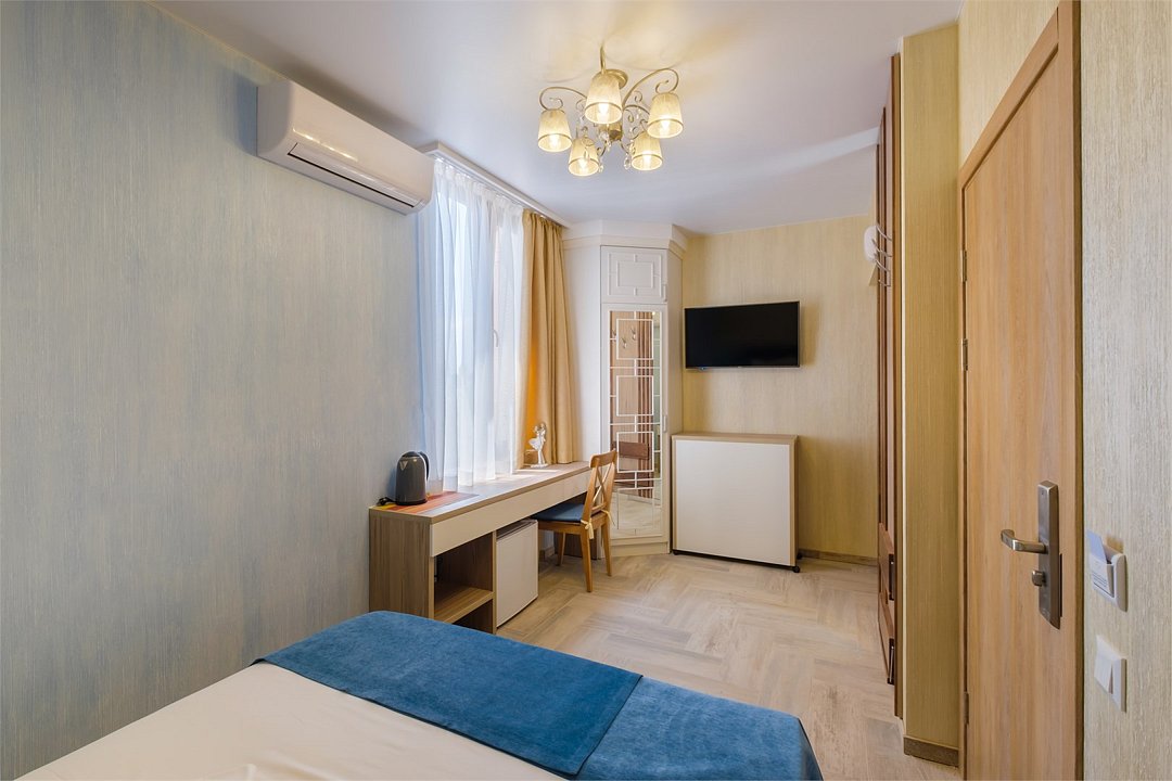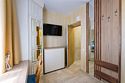 В номере: - Кровать (двуспальная или две односпальные) - Дополнительное место (раскладушка) - Кондиционер - Сигнализация - Звукоизоляция - Сейф - Шкаф-купе - Стол письменный и стул - Прикроватные тумбочки Кухонная зона: - Холодильник - Электрочайник - Посуда (минимальный набор) - Микроволновая печь (по запросу) - Питьевая вода в номере Санузел: - Душ - Туалет - Умывальник - Полотенца (банные и пляжные) - Мини-парфюмерия - Фен Услуги: - Частота уборки (1 раз в 3 дня или по требованию) - Смена постельного белья (1 раз в 3 дня или по требованию) Дополнительно: - Пол плиточный (с подогревом) - Москитная сетка, плотные шторы Вид из номера на здание, без балкона Технологии: - Телевизор (плазменный, кабельное ТВ) - Доступ в Интернет Wi-FiУслуги и удобства
