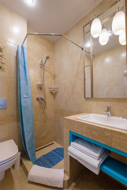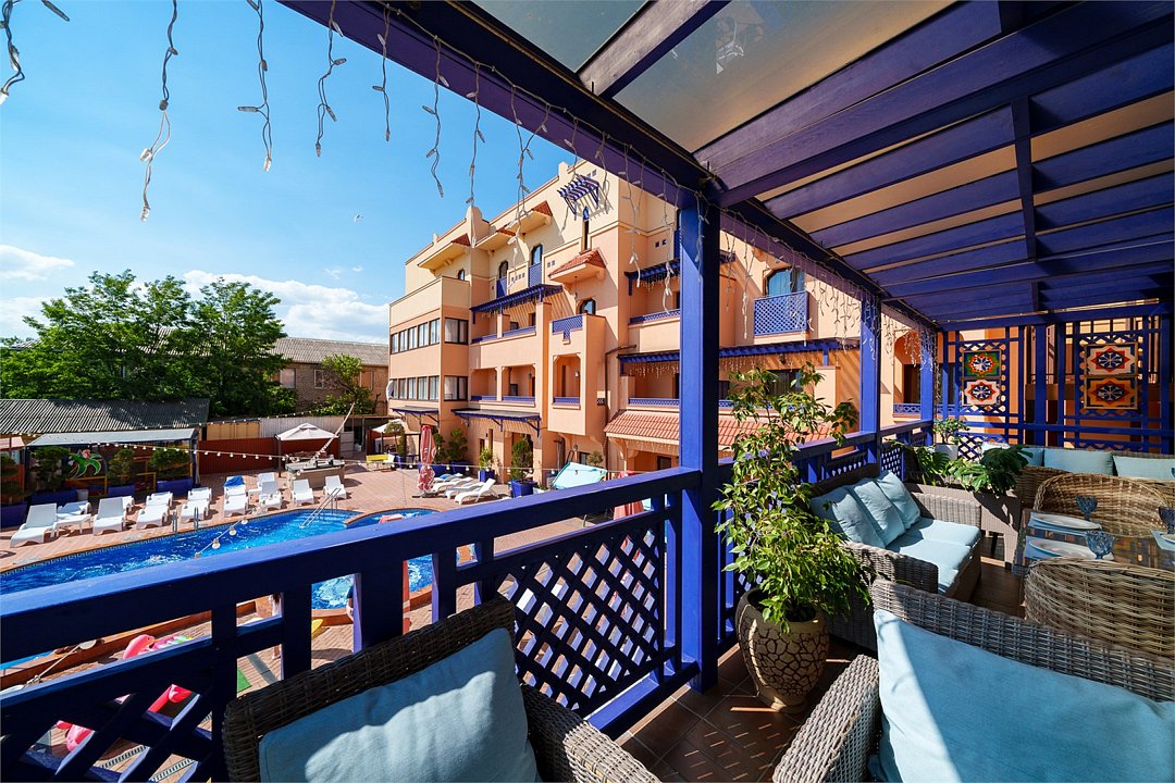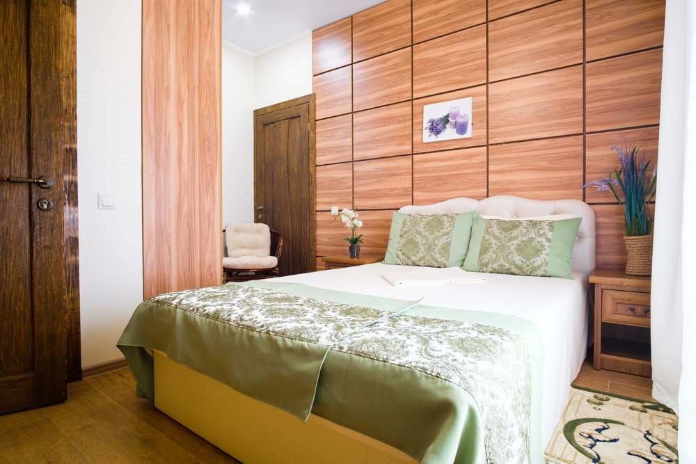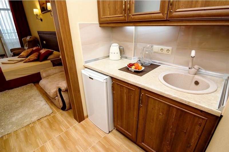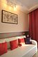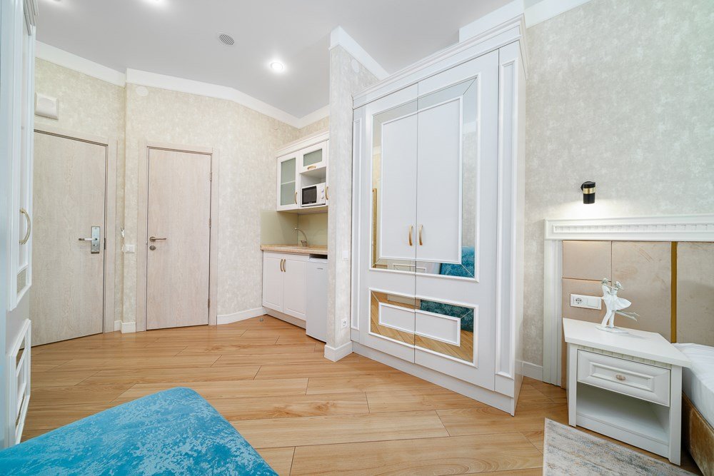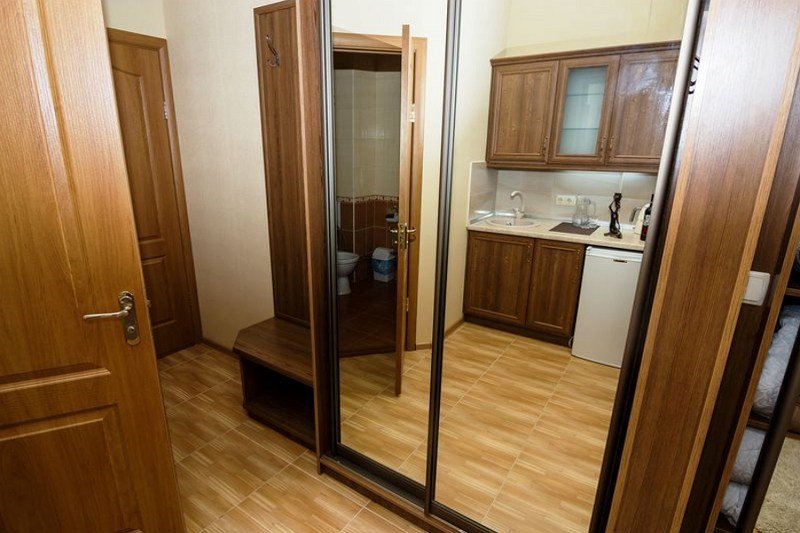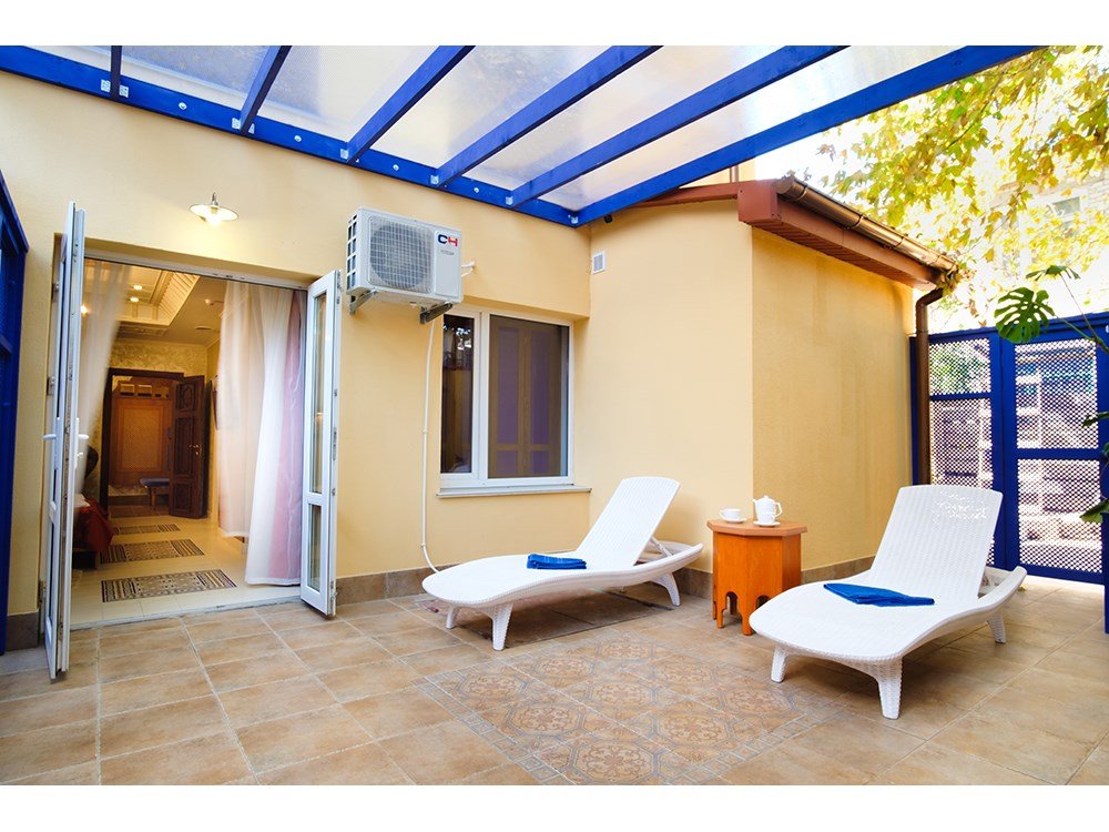 В номере: - Кровать (двуспальная или две односпальные) - Раскладной диван и раскладное кресло - Кондиционер - Сигнализация - Звукоизоляция - Сейф - Шкаф-купе - Стол письменный и стул - Прикроватные тумбочки Кухонная зона: - Холодильник - Электрочайник - Посуда (минимальный набор) - Микроволновая печь (по запросу) - Питьевая вода в номере Санузел: - Ванна - Туалет - Умывальник - Полотенца (банные и пляжные) - Мини-парфюмерия - Фен Услуги: - Частота уборки (1 раз в 3 дня или по требованию) - Смена постельного белья (1 раз в 3 дня или по требованию) Дополнительно: - Балкон общий - Пол: плиточный (с подогревом) - Москитная сетка, плотные шторы - Вид из номера: на двор Технологии: - Телевизор (плазменный, кабельное ТВ) - Доступ в Интернет (Wi-Fi)Услуги и удобства