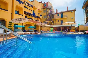 В номере (в каждой комнате): - Кровать (двуспальные или односпальные) - Дополнительное место (раскладушка) - Кондиционер - Сигнализация - Звукоизоляция - Сейф - Шкаф-купе - Стол письменный и стул - Прикроватные тумбочки - Кухонная зона (в каждой комнате): - Холодильник - Электрочайник - Посуда (минимальный набор) - Микроволновая печь (по запросу) - Питьевая вода в номере Санузел (в каждой комнате): - Душ - Туалет - Умывальник - Полотенца (банные и пляжные) - Мини-парфюмерия - Фен Услуги: - Частота уборки (1 раз в 3 дня или по требованию) - Смена постельного белья (1 раз в 3 дня или по требованию) Дополнительно: - 1 Балкон - Пол: плиточный (с подогревом) - Москитная сетка, плотные шторы - Вид из номера: на море, на бассейн Технологии: - 2 Телевизора (плазменный, кабельное ТВ) - Доступ в Интернет Wi-FiУслуги и удобства
