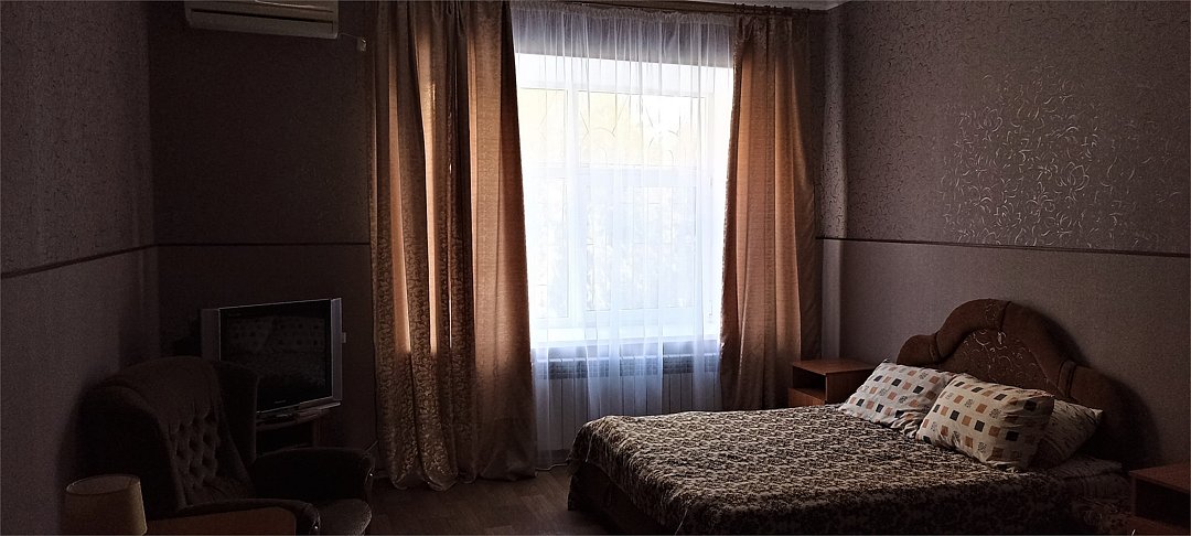 1-мест.номер "Стандарт+". В номере ТВ, хол-к, конд-р, с/у, душевая кабина, чайник, фен. Двуспальная кровать.Услуги и удобства