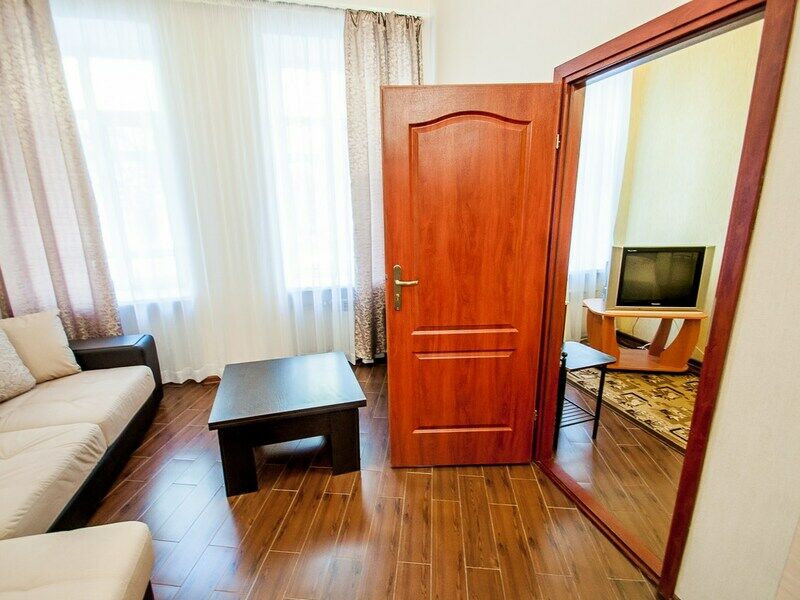 Двухкомнатный 4-х.мест.номер "Стандарт+".В номере ТВ, хол-к, конд-р, с/у, душевая кабина, чайник, фен. Двуспальная кровать и диван-кровать.Услуги и удобства