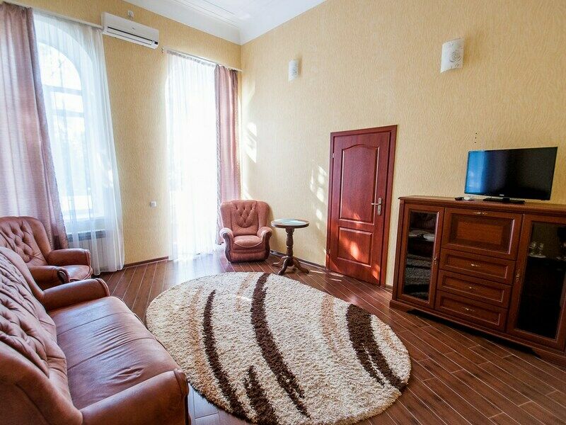 телевизор, Wi-Fi, холодильник, кондиционер, светильник, настольные лампы, фен, душевая кабина, санузел, банные полотенца, тапочки, двуспальная кровать, две полутораспальные кровати, тумбы, стулья, шкаф для одежды, вешалки, журнальный столик, письменный стол, багажная тумба, комод, ковер, две комнаты, письменные принадлежности, набор посуды, обслуживание номеров, сейф, косметическое зеркало, вид на сад, кулер на этаже, высокие потолки, стаканы, вид на парк, диван-кровать, раскладной диван, внутренний телефон, москитная сетка, гостиничная парфюмерияВ номере