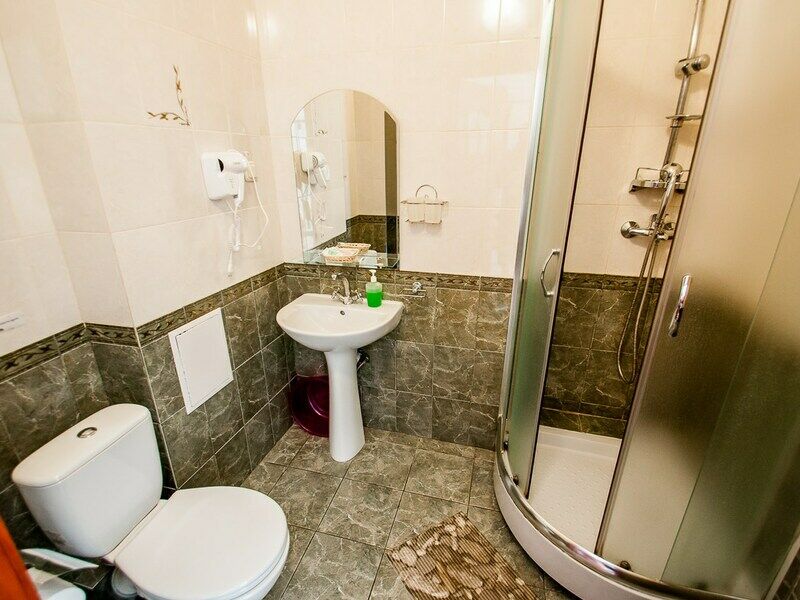 телевизор, холодильник, кондиционер, фен, душевая кабина, санузел, двуспальная кровать, чайникВ номере