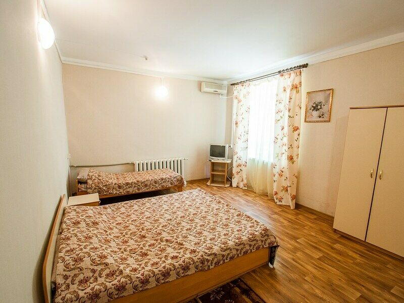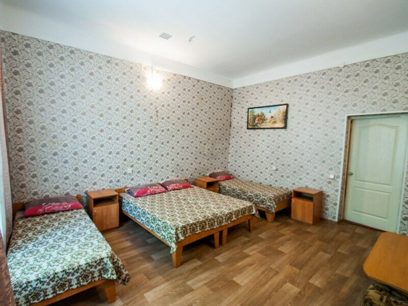 Семейный номер "Эконом". В номере три полутороспальные кровати, хол-к., вентилятор. С/у, душевая на этаже.Услуги и удобства