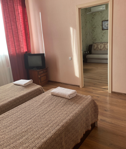 июнь 2022 г.Отличное сочетание цена/качество.Гостиница понравилась. Номер люкс просторный и комфортный. Приятно порадовал чистый и теплый бассейн. Очень хорошая и светлая спа зона (но это за отдельную плату))). Завтрак каша+ яичница или блинчики. В один день был вкусный заварной кофе, во второй нет. видимо зависит от повара. До моря идти минут 7.