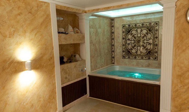Тип бассейна: открытый бассейнВода в бассейне: подогреваемый бассейнРядом с бассейном: душ, шезлонги, полотенцаРазмеры: 4.5 x 10 мПлощадь: 45 м²Время работы: от 10:00 до 19:00Во внутреннем дворе отеля оборудован бассейн, рядом с которым расположены шезлонги, душ, туалет, площадка для барбекю и детская площадка. Для гостей предусмотрены бесплатные пляжные полотенца (залог 500 ₽, замена 50 ₽).