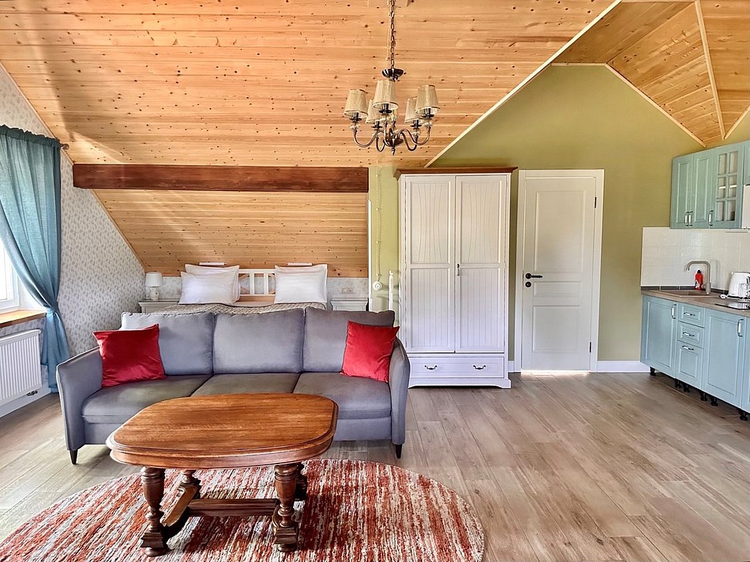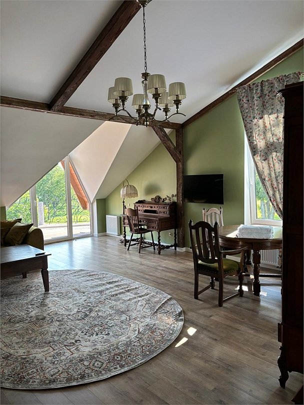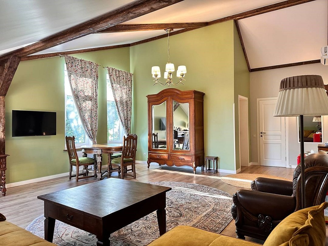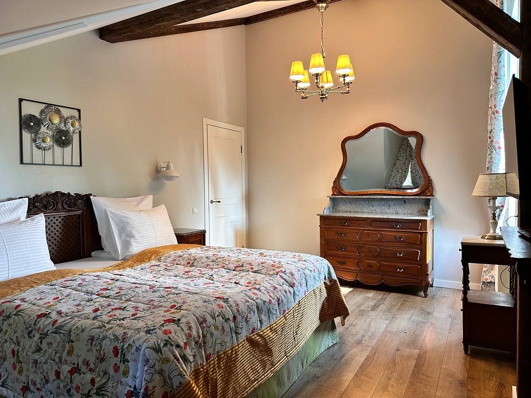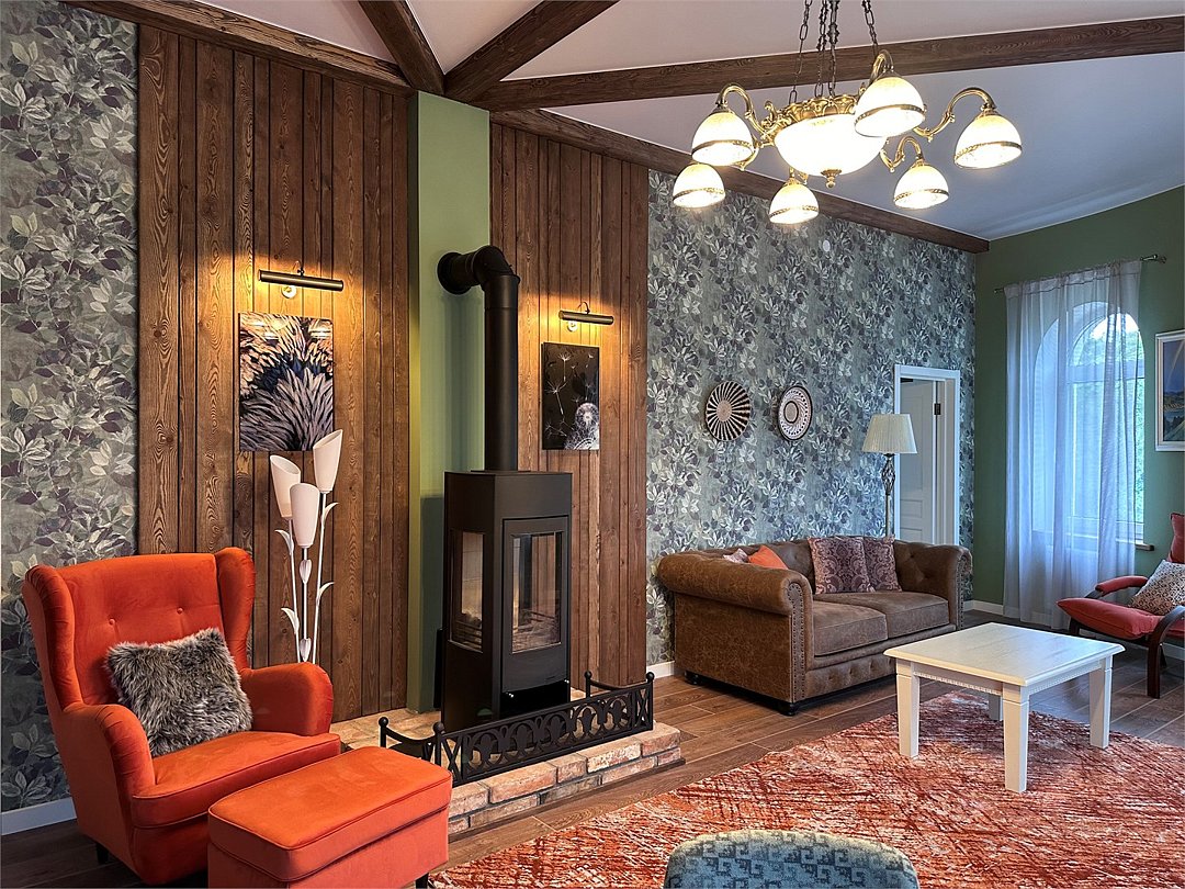 Три номера на втором этаже корпуса "терем" с одной общей лаундж зоной, оснащенной обеденной зоной, кухней, телевизором и камином.Услуги и удобства