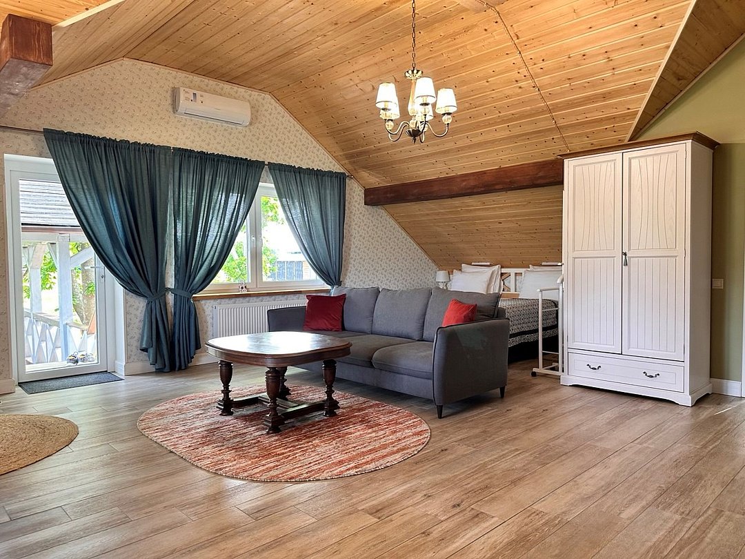 телевизор, Wi-Fi, кондиционер, фен, кофемашина, ванная комната, ванна, биде, халаты, банные полотенца, тапочки, балкон с красивым видом, балкон с шезлонгом, двуспальная кровать, диван, кресла, стулья, шкаф для одежды, вешалки, журнальный столик, письменный стол, обеденный стол, зеркало, комод, унитаз, раковина, отдельный вход в номер, душ, панорамные окна, внутренний телефон, мини-холодильник, вид на озеро, антикварная мебель, вешалки-плечики, шапочка для душа, мыло, затемняющая штора, без питомцевВ шале