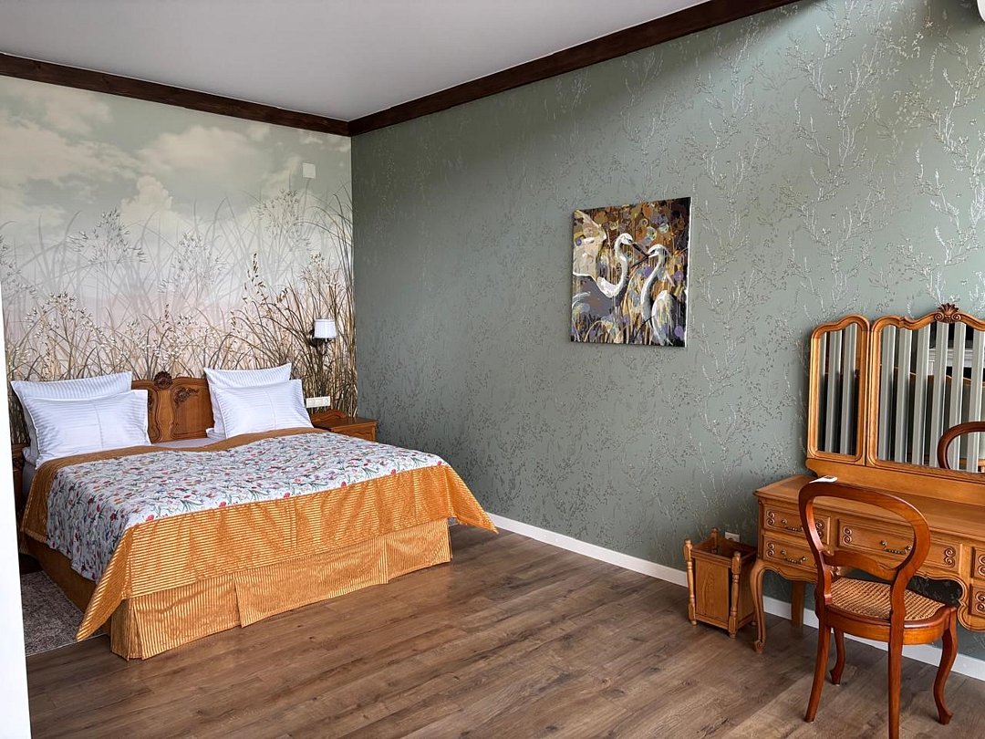 телевизор, Wi-Fi, кондиционер, халаты, косметические средства, балкон с шезлонгом, кровать «King size», диван, шкаф для одежды, эксклюзивная мебель, унитаз, душ, мини-холодильник, вид на озеро, рабочий стол, гигиенический душ, без питомцевВ номере