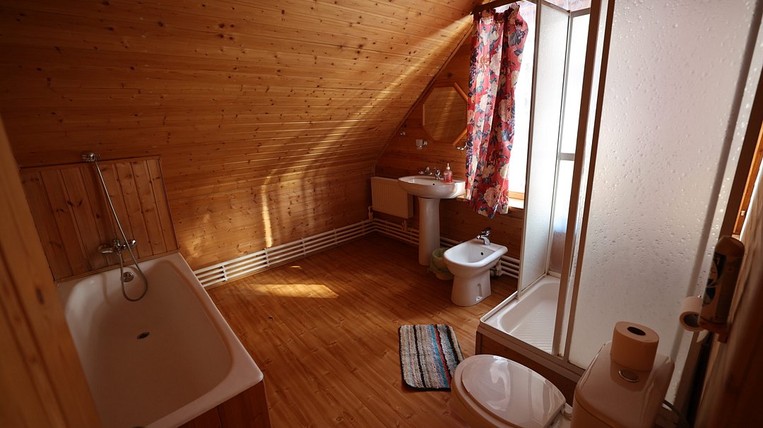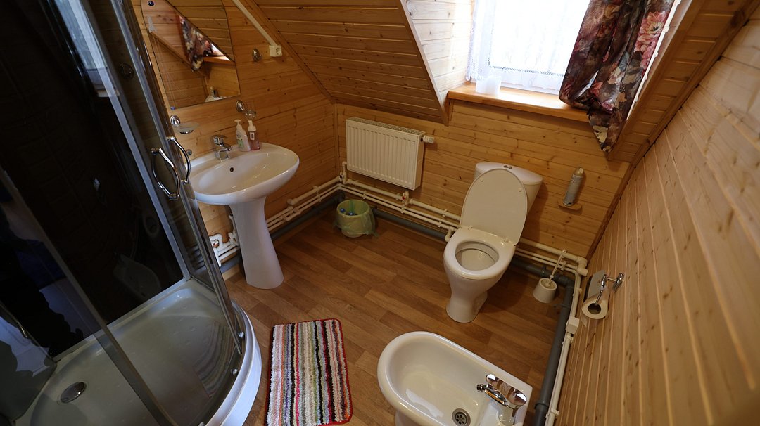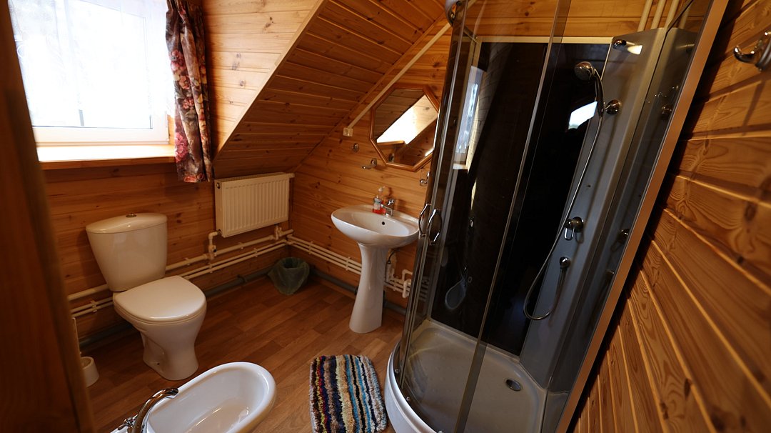 Во всех номерах есть ванная комната с раковиной, душевой кабиной и туалетом. По два полотенца на каждого гостя.