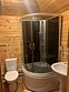 Ванная комната с душевой кабиной и туалетом. По два полотенца на каждого гостя.