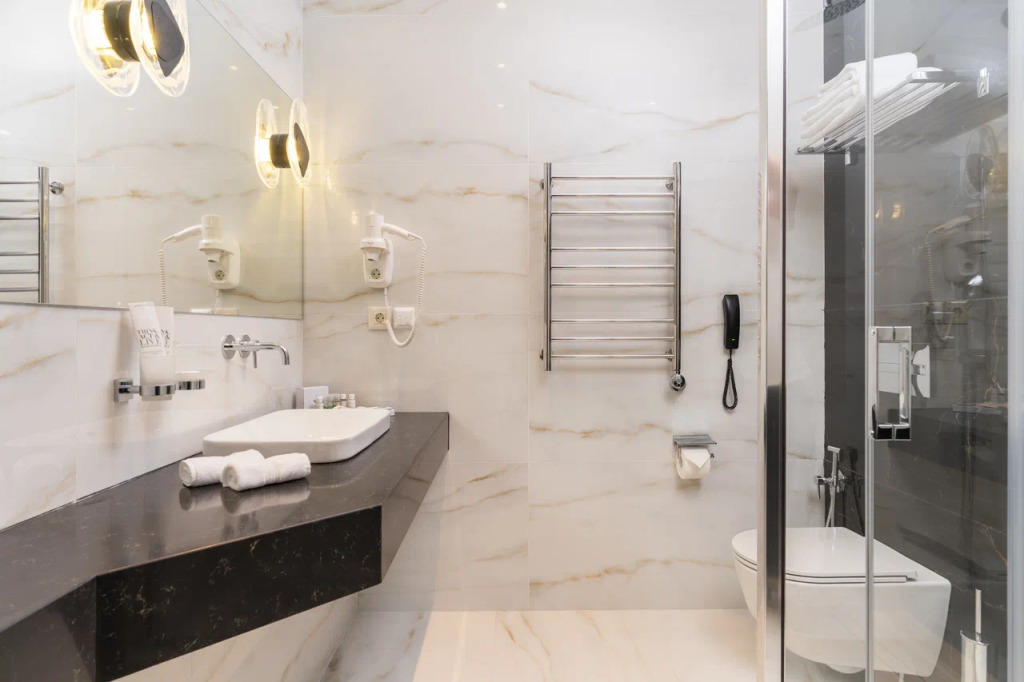 Чтобы вы могли отдохнуть после долгого дня, в номере есть телевизор, мини-бар и халат. Перечисленные услуги есть не во всех номерах.