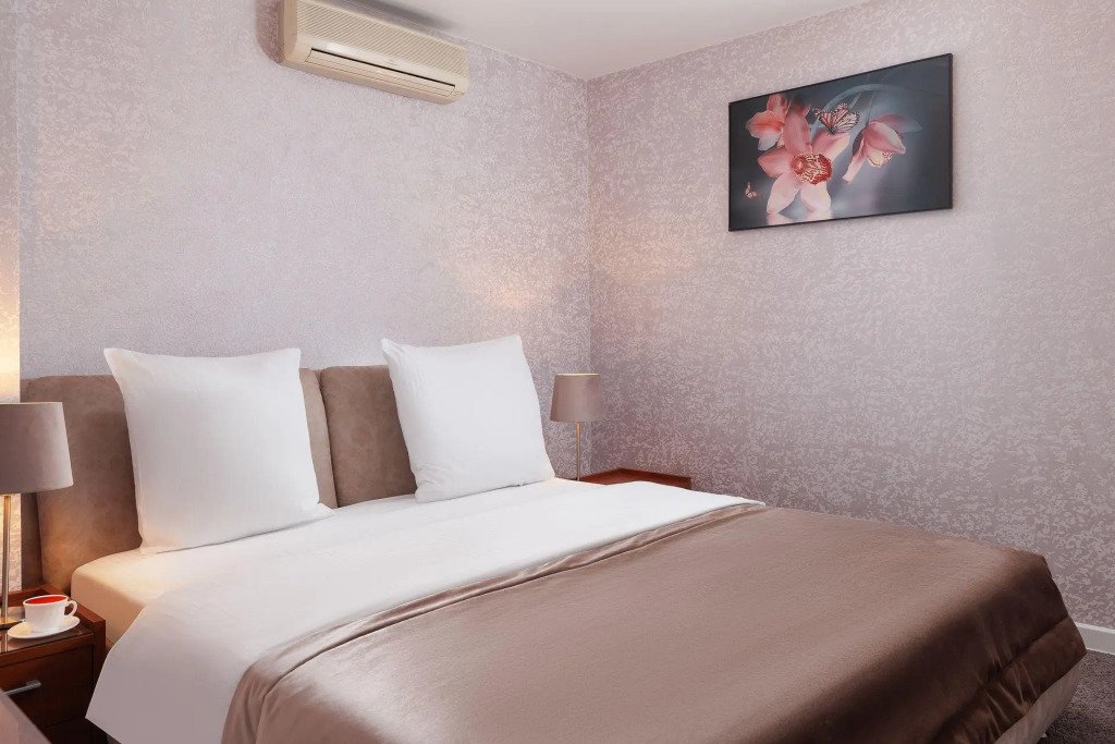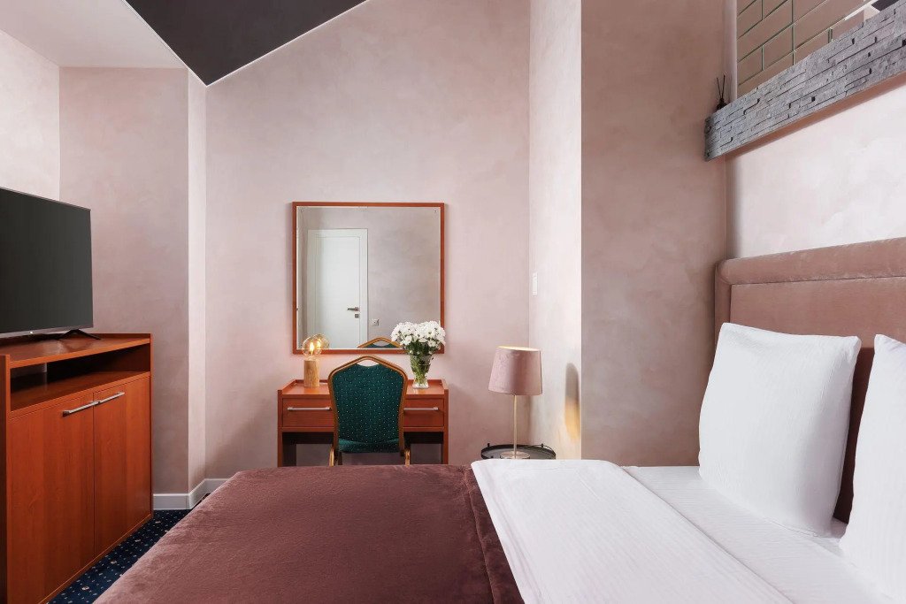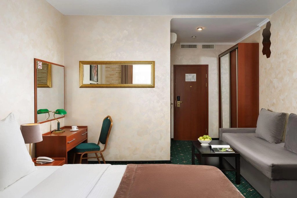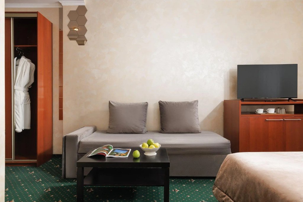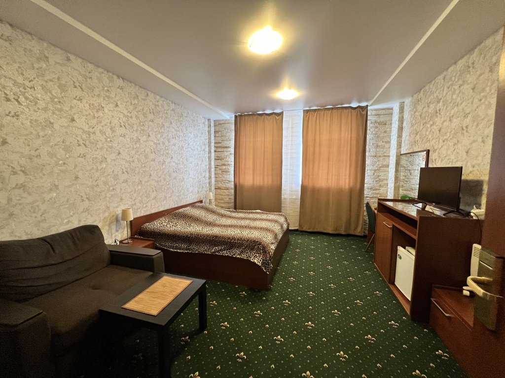 Номер уютно обставлен и оснащён необходимым, чтобы отдохнуть после долгого и насыщенного дня. Имеются телевизор. Оснащение зависит от выбранной категории номера.