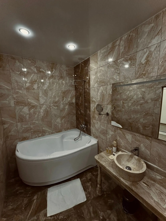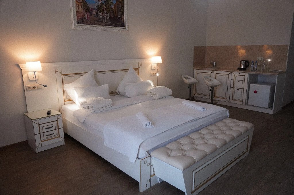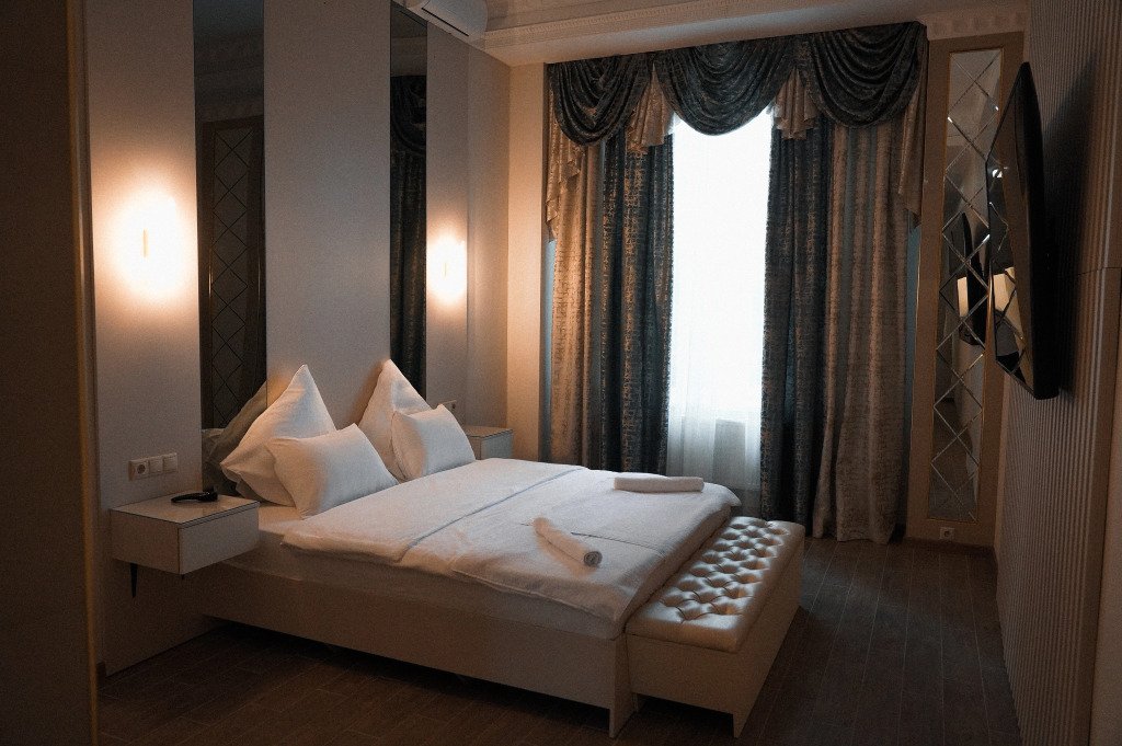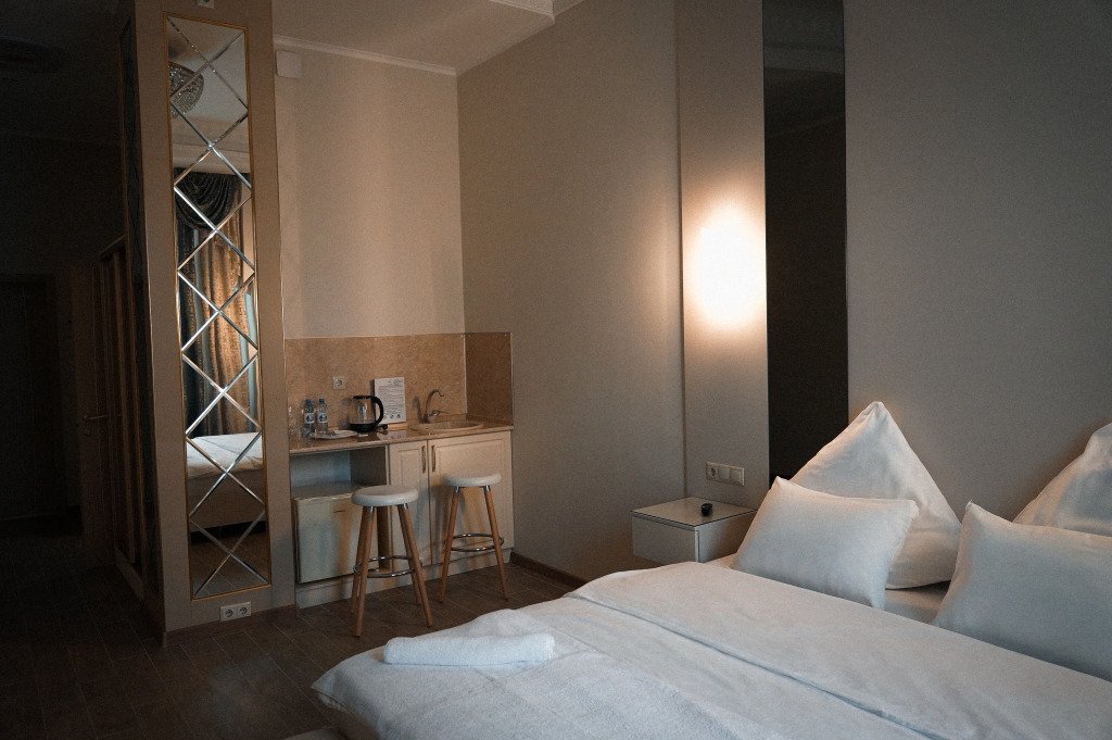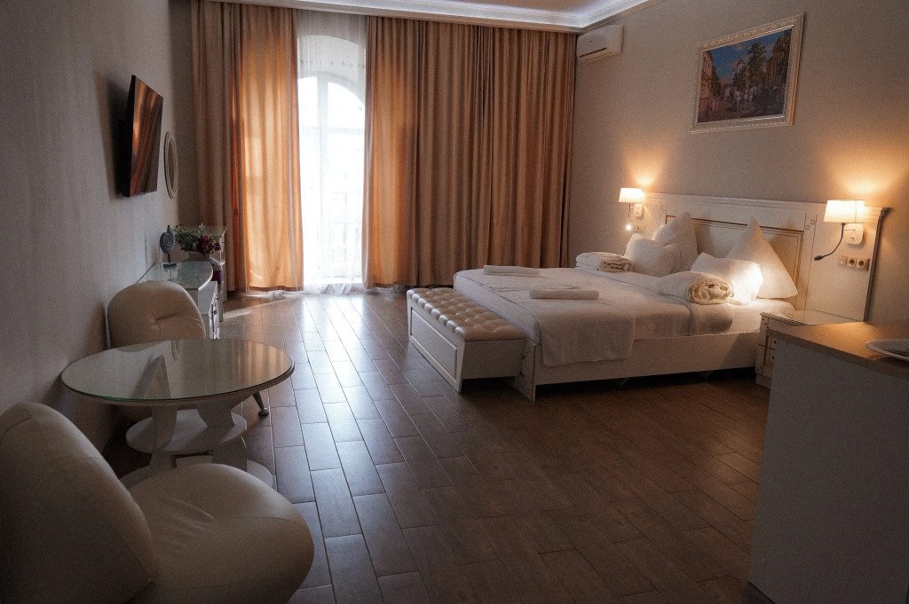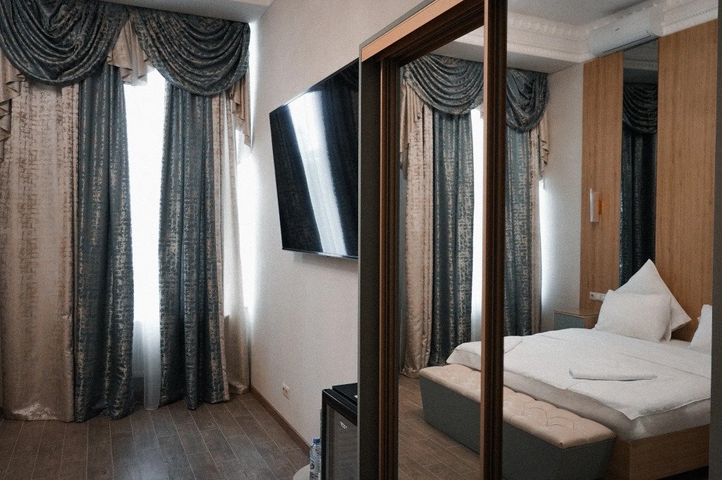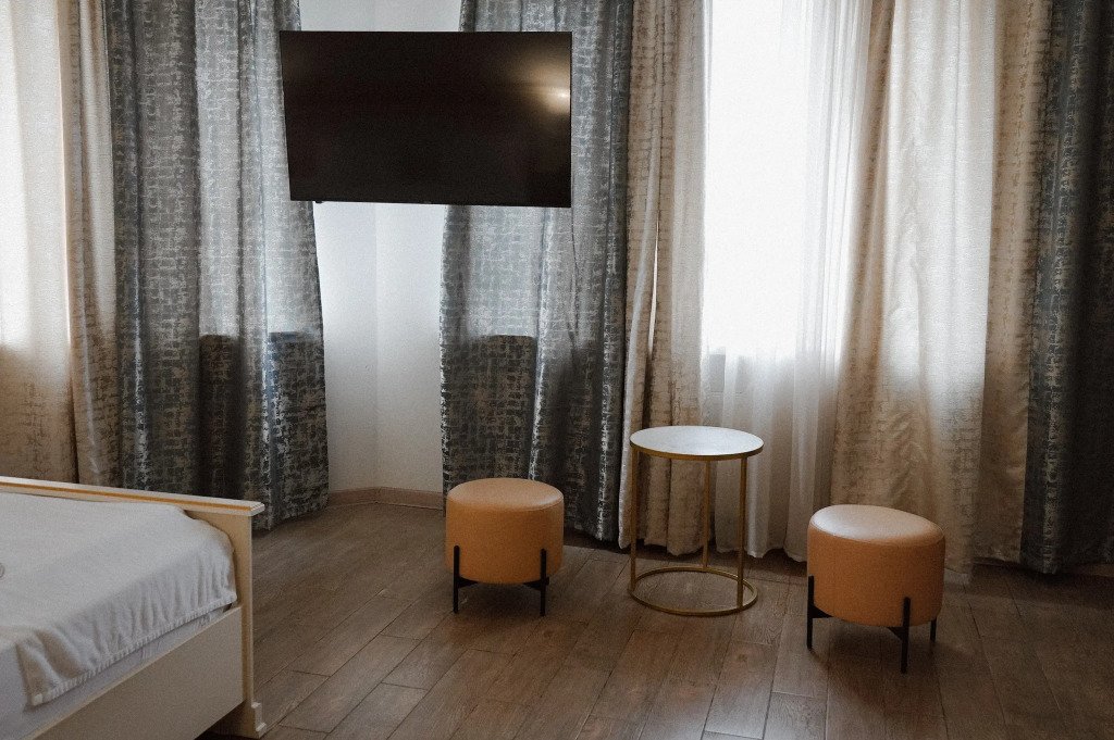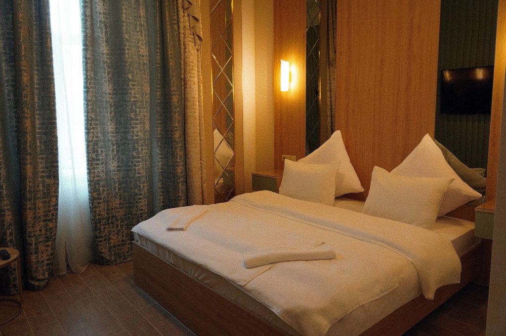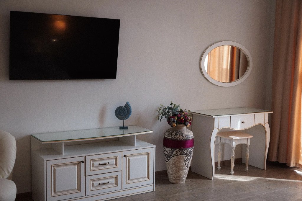 В номере гостей ждут телевизор и халат. Перечисленные услуги есть не во всех номерах.