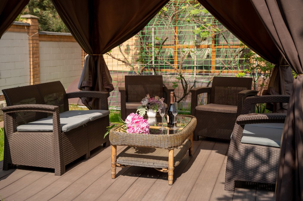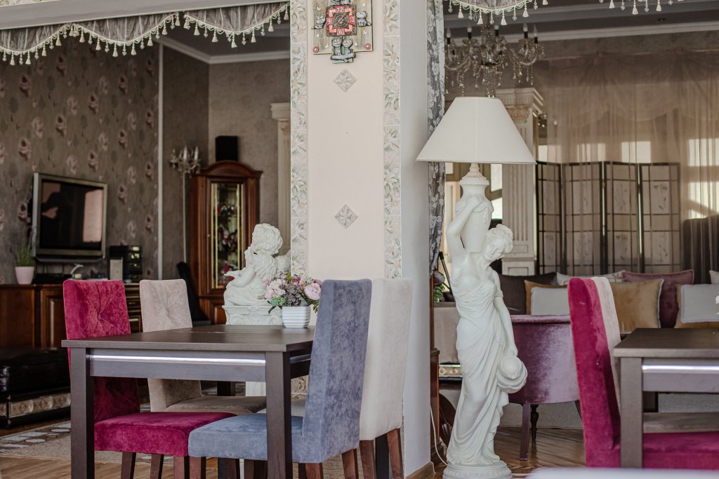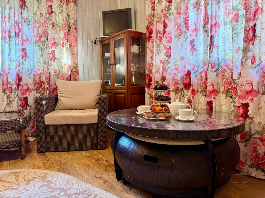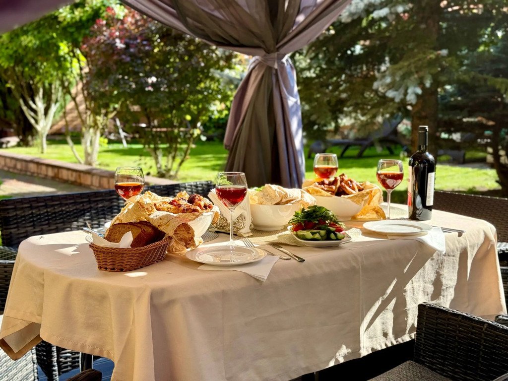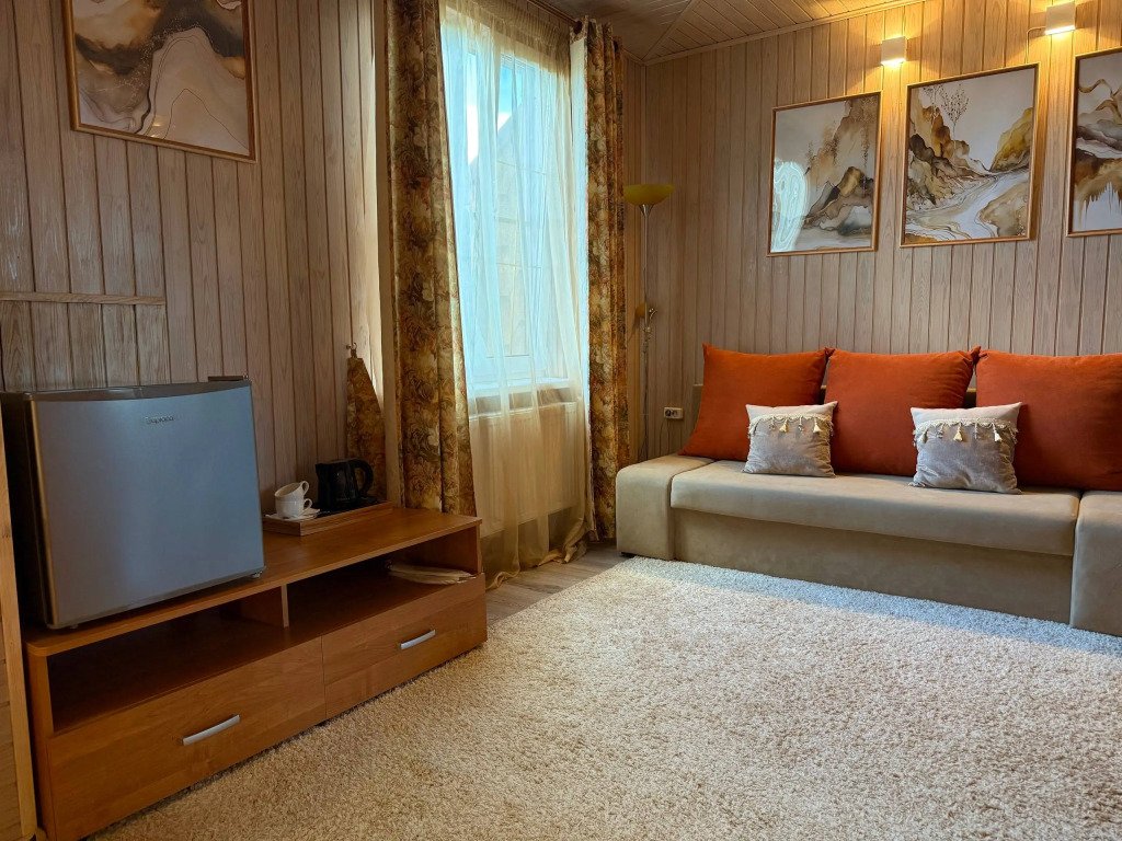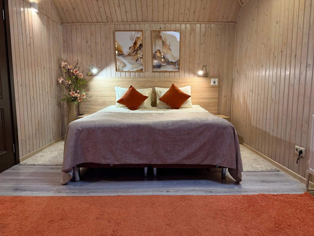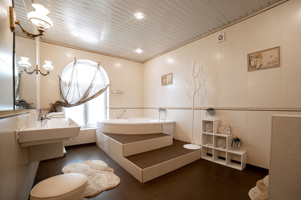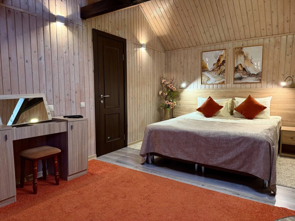 К услугам гостей русская дровяная баня, 3 вида саун: финская, соляная и инфракрасная, кедровая бочка, бассейн. Во дворе есть площадка для барбекю и теплая беседка. Также есть бильярдная комната, небольшой тренажерный зал, настольный теннис, шахматы. Бесплатный Wi-Fi на всей территории. Континентальный завтрак включен в стоимость проживания.