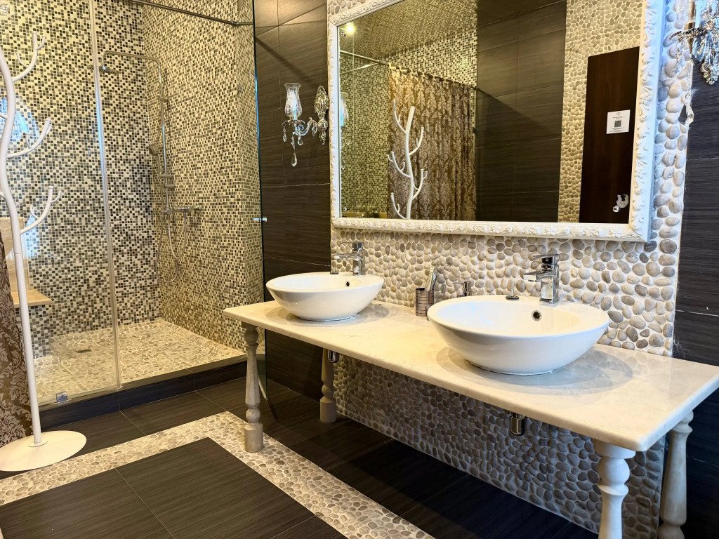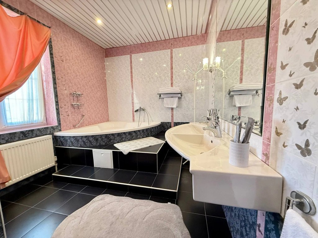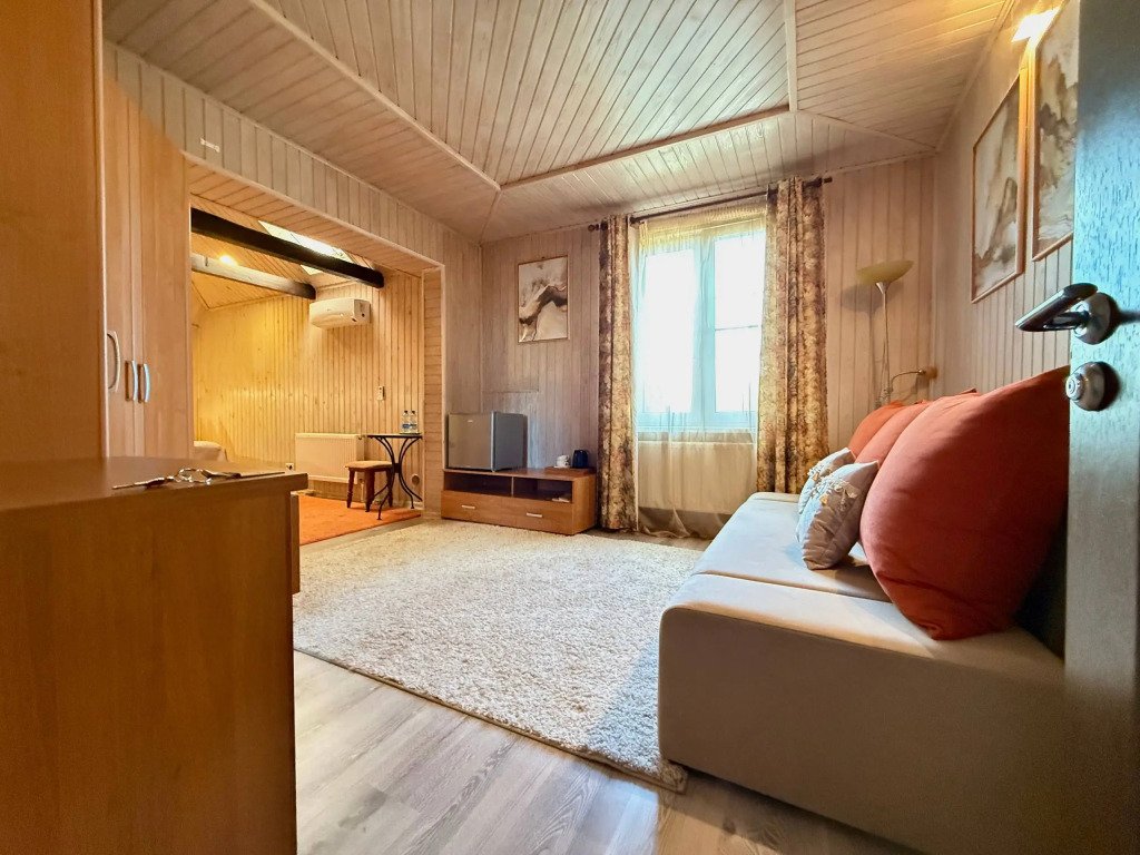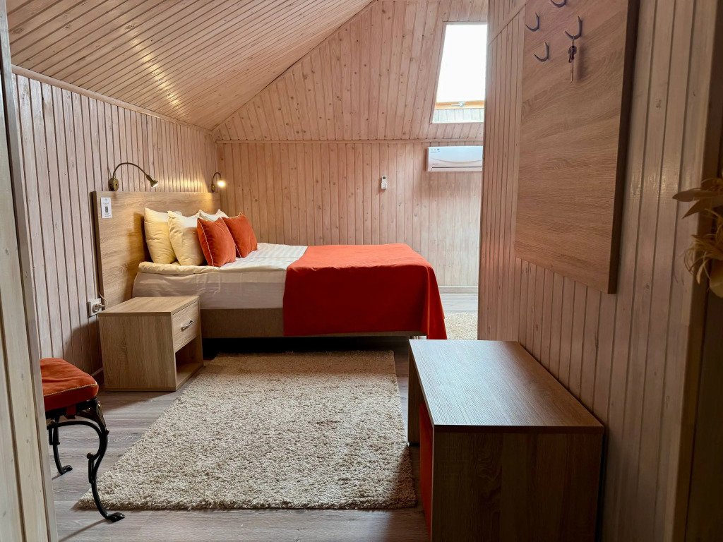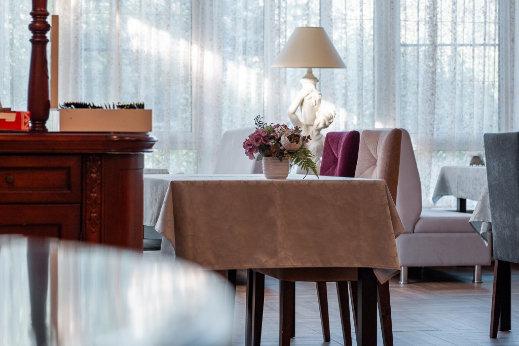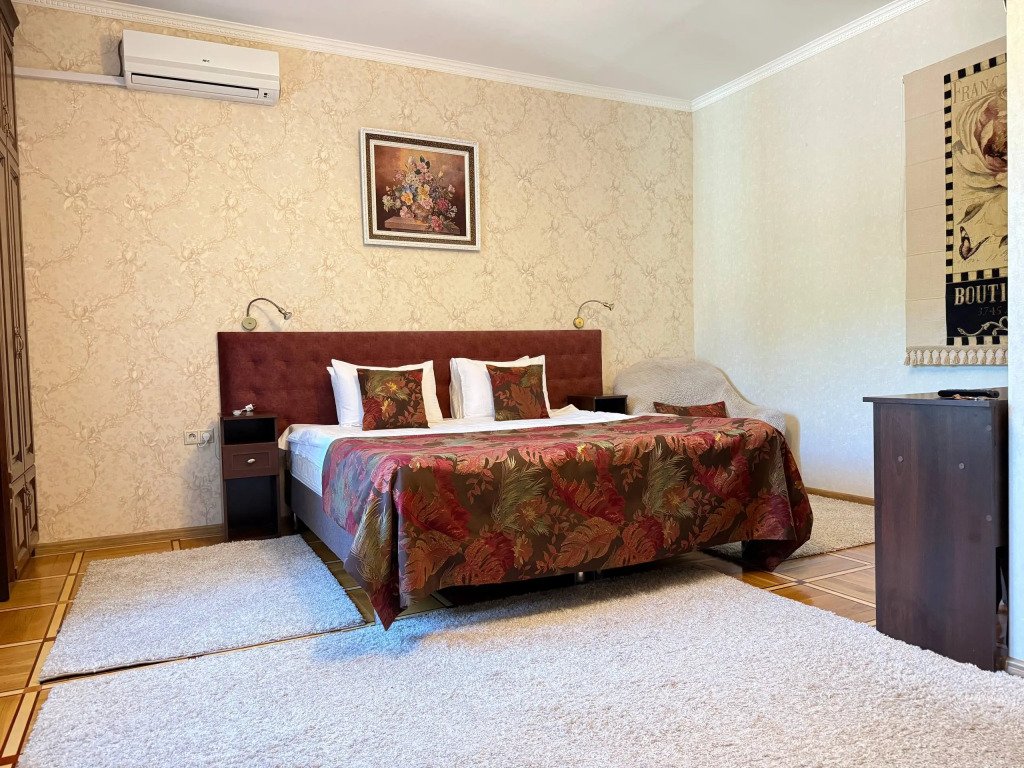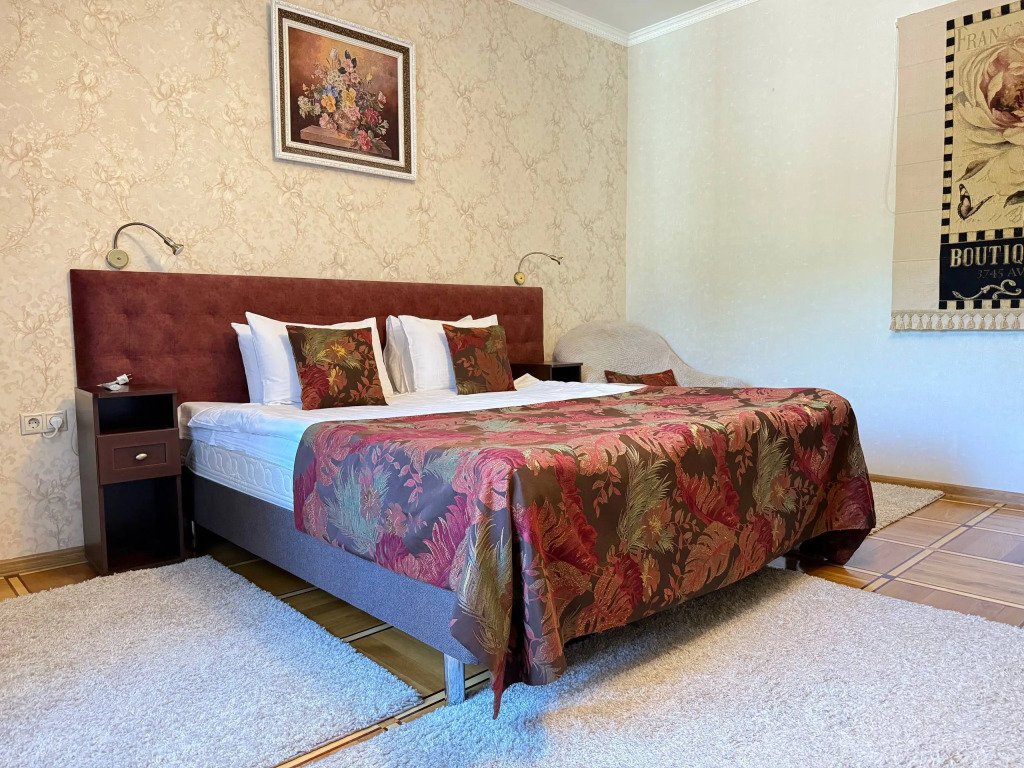 К услугам гостей русская дровяная баня, 3 вида саун: финская, соляная и инфракрасная, кедровая бочка, бассейн. Во дворе есть площадка для барбекю и теплая беседка. Также есть бильярдная комната, небольшой тренажерный зал, настольный теннис, шахматы. Бесплатный Wi-Fi на всей территории. Континентальный завтрак включен в стоимость проживания.