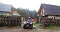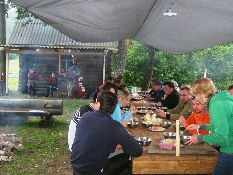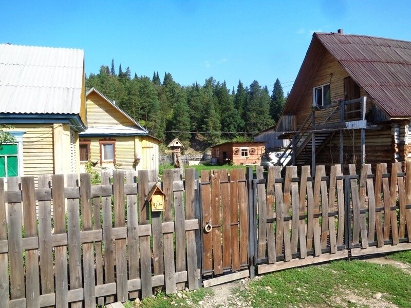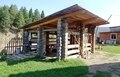 Шестиместный домик деревенского типа. В домике имеется: 4 двуспальные кровати, стол и табуреты, зеркало, рукомойник, печь.