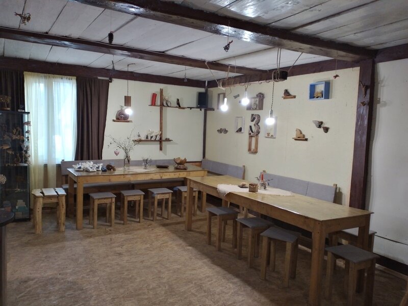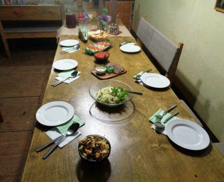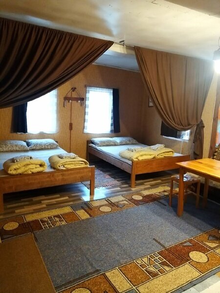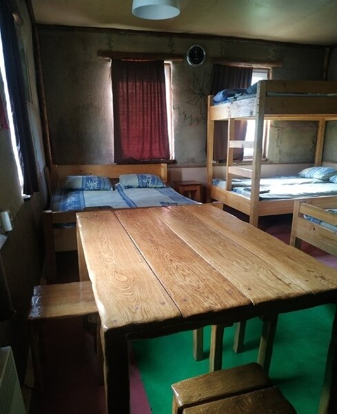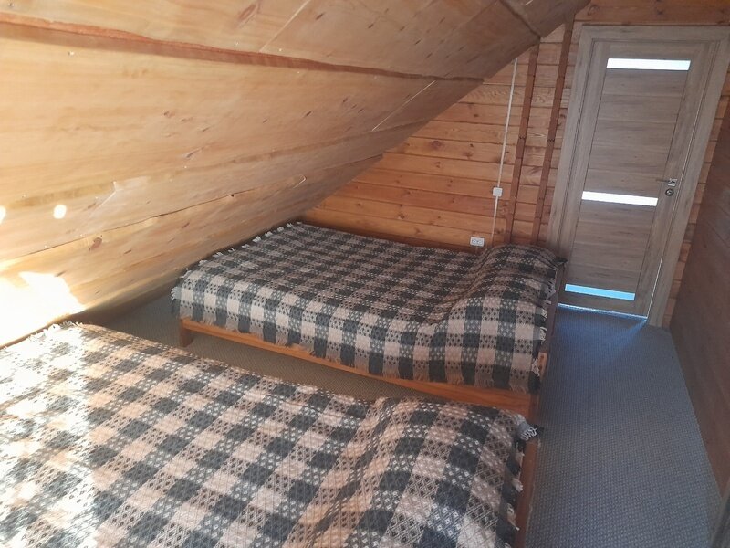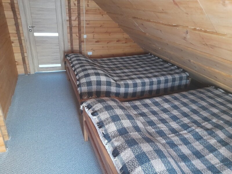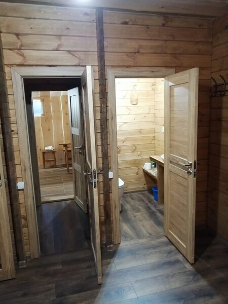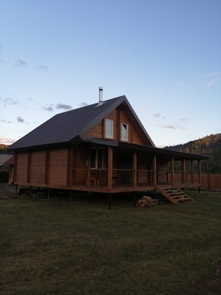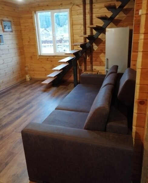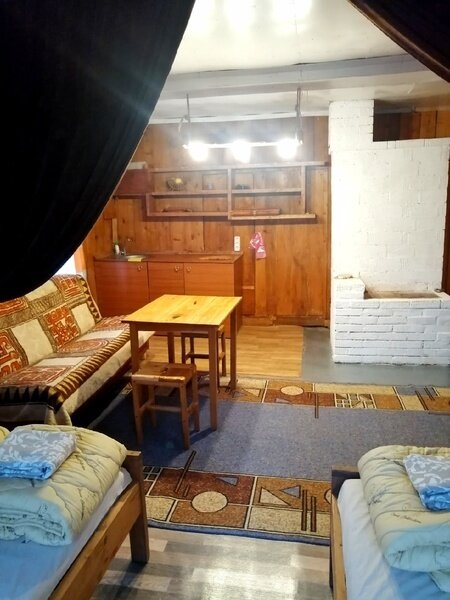 Уютный двухэтажный домик на 12-14 человек. В доме есть все удобства: туалет, душевая, баня, телевизор, 3 спальни с кроватями ручной работы, печь, посуда.