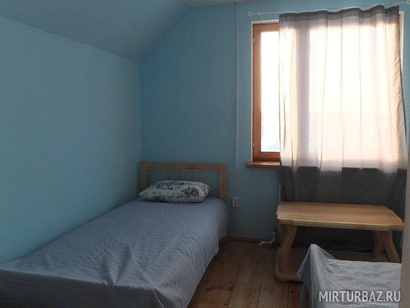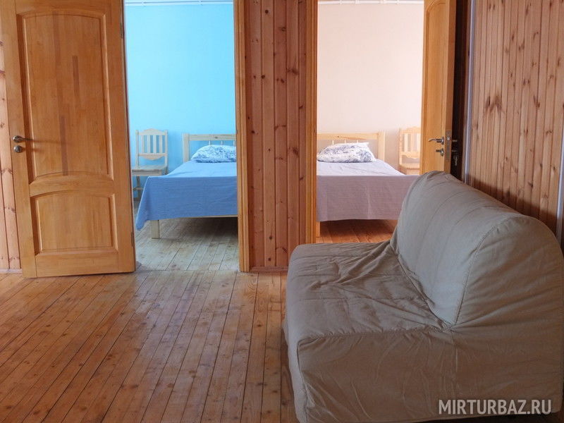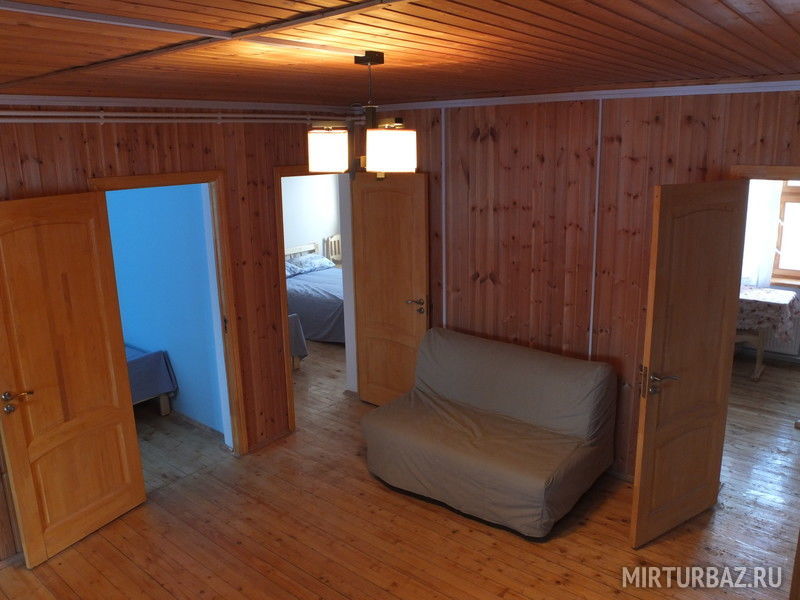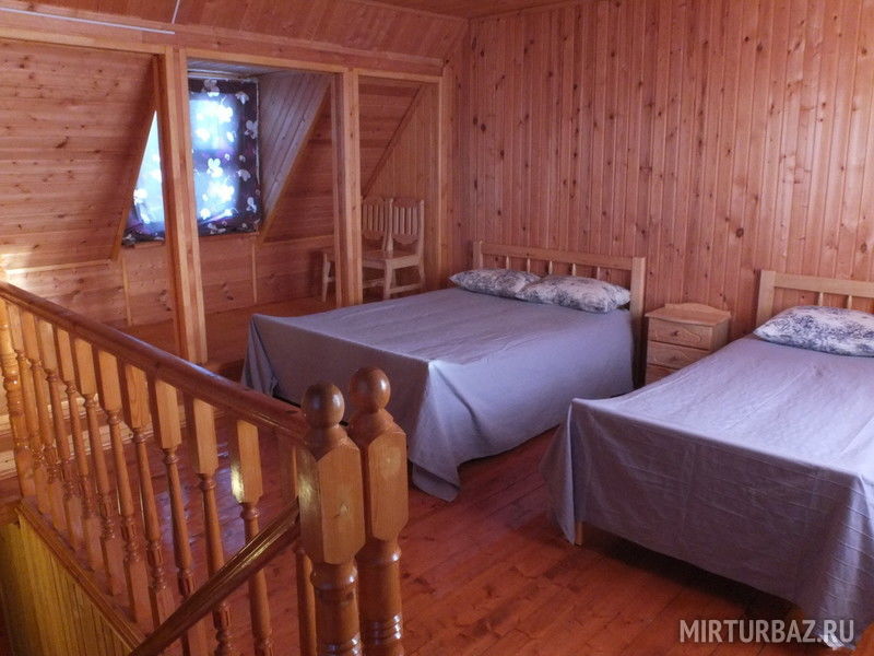 2 этаж: одна комната с односпальной и двуспальной кроватью, 1 комната с 4-я односпальными кроватями.