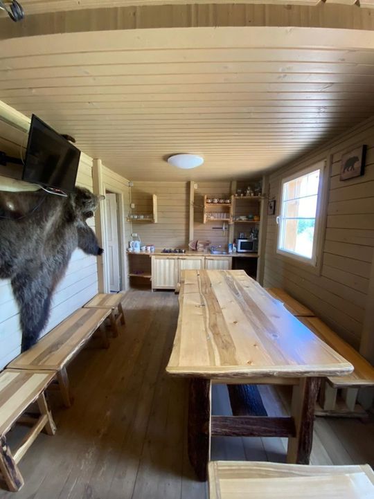 Комфортабельный дом на 10 человек с собственной кухней и санузлом. 4 полутороспальных кровати и 2 односпальных.