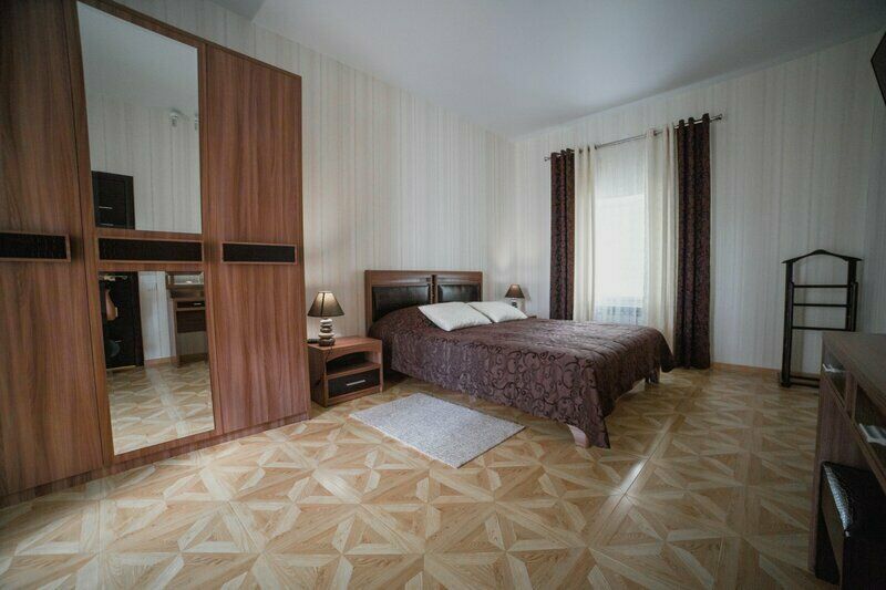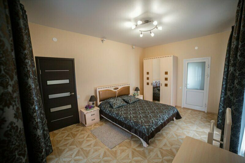 Номер рассчитан на размещение 6-ти человек, состоит из двух спален (с двухспальными кроватями), гостиной с полноценной кухней, укомплектован необходимой мебелью, холодильником, телевизорами с цифровым ТВ, телефонами для связи с сотрудниками базы отдыха, кондиционерами. В санузле - унитаз, душевая кабина, раковина, зеркало, комплект полотенец, одна из спален оборудована дополнительным санузле с унитазом и угловой ванной. Кроме того, дом содержит сауну с душевой.