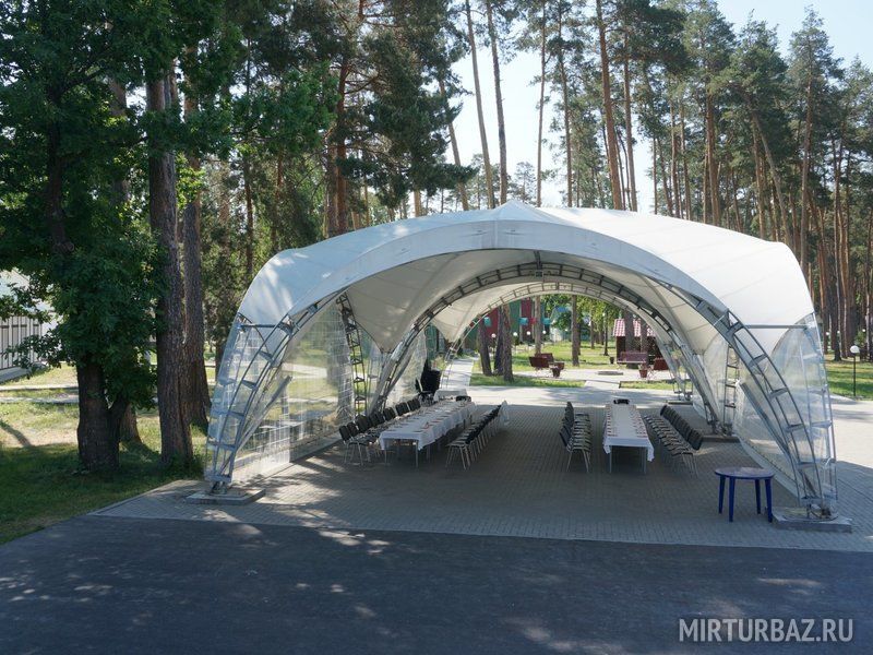 Дорогие гости, для вас работает летняя веранда, площадь которой позволит провести мероприятия разного характера: свадебные торжества, выездные регистрации, банкеты, корпоративные вечера. Летняя веранда вмещает в себя от 30 до 55 человек. Веранда под навесом - это идеальное место для проведения праздника на свежем воздухе. Здесь можно отведать особенно ароматную и вкусную пищу, ощутить радость общения с природой и близкими людьми, при этом не слишком отрываясь от благ цивилизации.