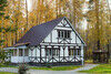 Номер рассчитан на размещение 7-ми человек, состоит из трех спален (две - с двухспальными кроватями, одна – с односпальной), гостиной и кухни, укомплектован необходимой мебелью, холодильником, телевизорами с цифровым ТВ и телефонами для связи с сотрудниками базы отдыха. В санузле - унитаз, душевая, раковина, зеркало, комплект полотенец. Кроме того, дом содержит крытую летнюю веранду и балкон.