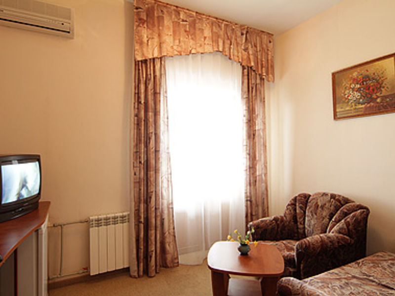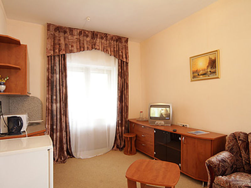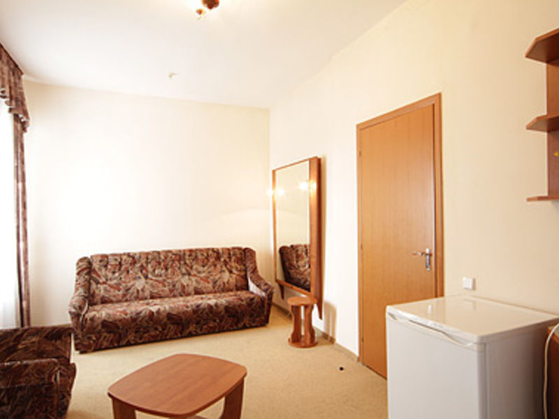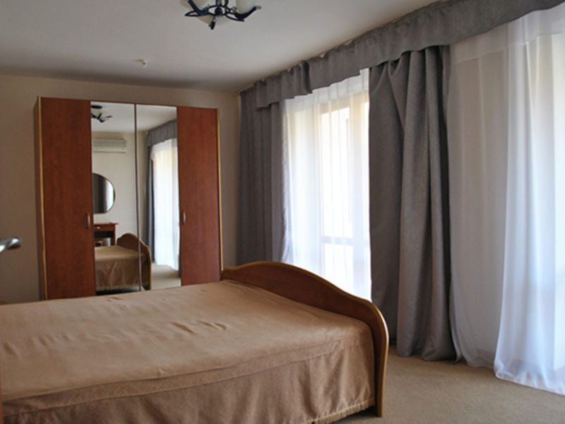 Жилой фонд гостиницы размещается в шестиэтажном здании с лифтом и 4-х этажном коттедже (лифта нет). Номера для постояльцев категорий «полулюкс» и «повышенный комфорт», «стандарт» и «эконом», способны одновременно вместить до 250 человек. В их распоряжении – необходимая мебель, холодильник, ТВ и Wi-Fi, основная часть из них оборудована кондиционерами. Из номеров, выходящих на юг, видны море и бассейн, из северных – парк.