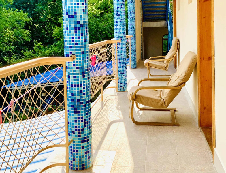 С территории гостевого дома и террас открывается волшебный вид на Черное море, Крымские горы, парки, красивые корпуса прибрежных санаториев.