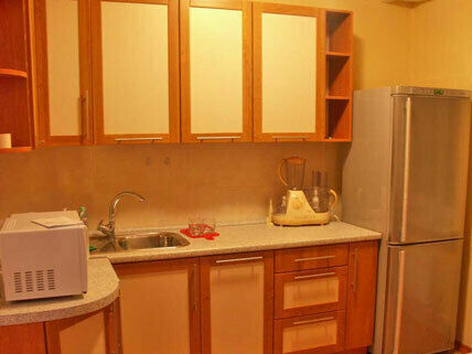 В 1,2 км от дома есть парк в котором можно покататься на катке, на лыжах или санях.