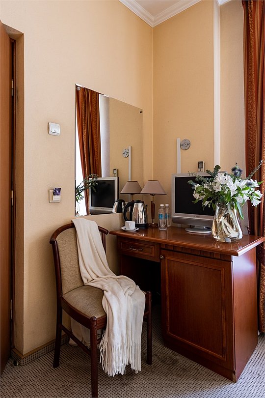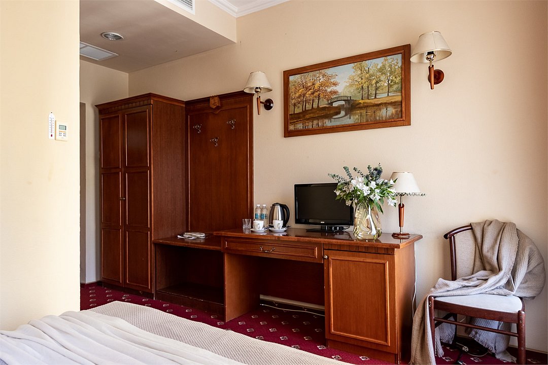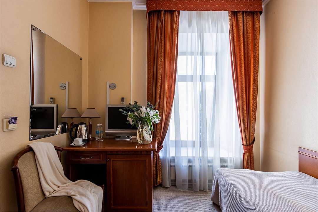 телевизор, кабельное телевидение, Wi-Fi, интернет, кондиционер, светильник, настольные лампы, фен, система безопасности, ванная комната, душевая кабина, ванна или душевая кабина, санузел, тапочки, гигиенические средства, косметические средства, односпальная кровать, тумбы, стулья, шкаф для одежды, вешалки, письменный стол, зеркало, мебельный гарнитур, чайный набор, обслуживание номеров, чайник, унитаз, раковина, косметическое зеркало, питьевая вода, ковровое покрытие, отопление, душ, кулер на этаже, стаканы, стул, тумба, туалетные средства, туалет, внутренний телефон, телевизор с плоским экраном, мини-холодильник, номер для некурящих, рабочий стол, уборка номера, затемняющая штора, зеркало в полный рост, можно с питомцамиВ гостиничном номере