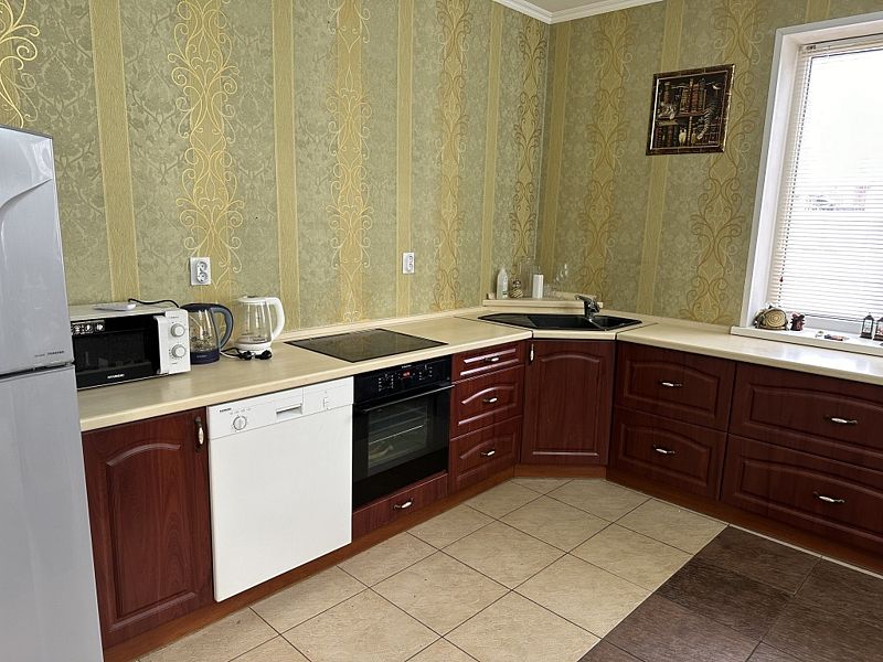 Двухэтажный дом с тремя спальнями на втором этаже, просторной гостиной на первом этаже, где можно устраивать праздничные мероприятия. Есть кухонная зона со всем необходимым оборудованием для приготовления еды.