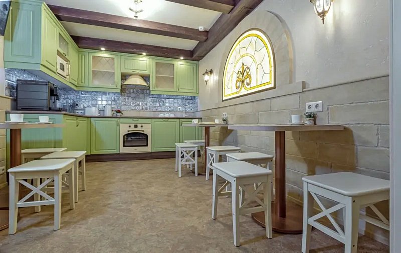 Для комфорта гостей есть бесплатная услуга - Гостевая кухня. Кухня оснащена всем необходимым для удобства: кофемашина ( с зерновым кофе и капучинатором), индукционная варочная панель, духовка , чайник, тостер , микроволновая печь , холодильник , морозилка , посуда для готовки и сервировки стола, а так же Smart TV.