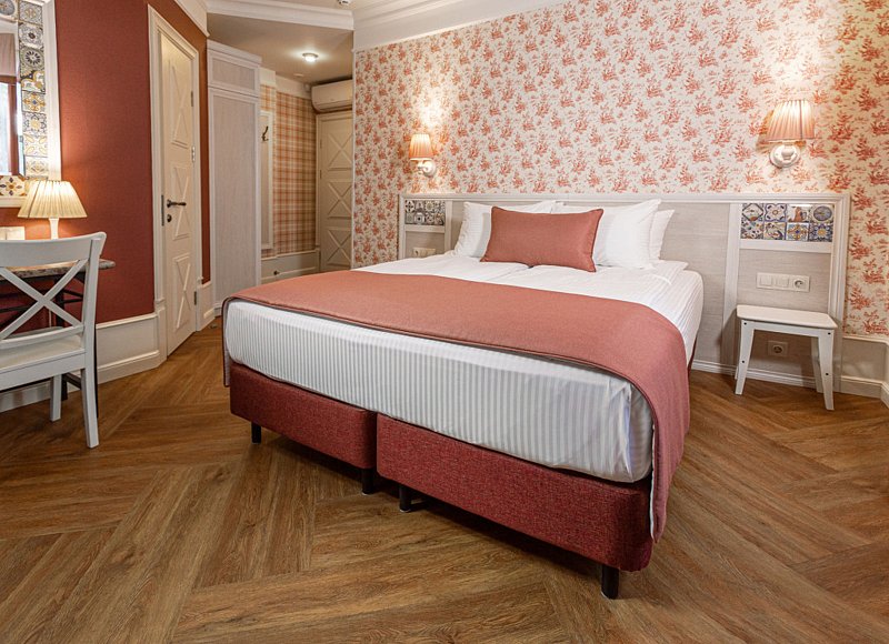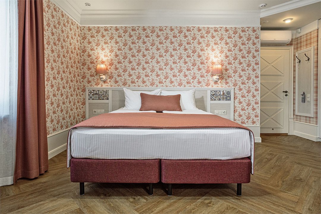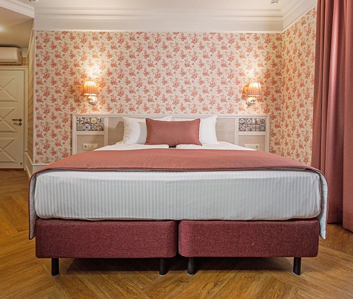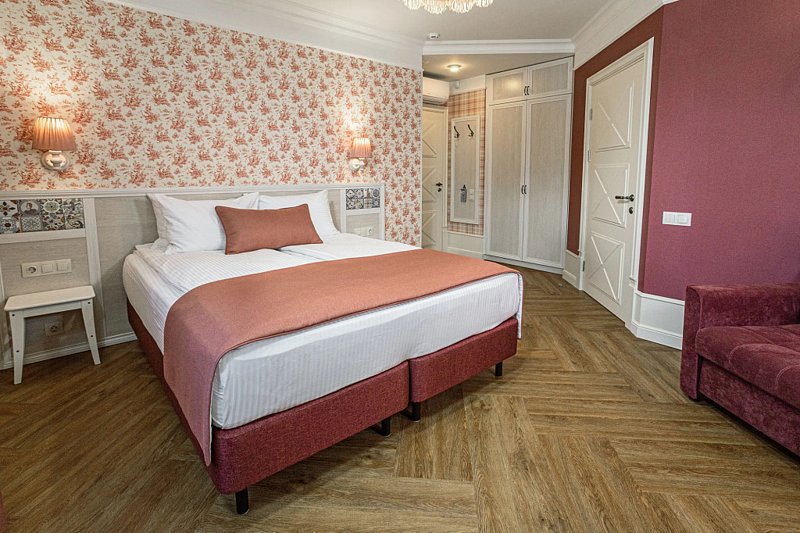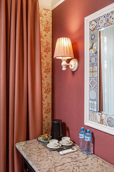 Уютный номер в рубиновых тонах с новым, современным авторским дизайном в стиле "Прованс". Номер оснащен всеми удобствами для комфортабельного отдыха: шторами, не пропускающими дневной свет "блэкаут", кондиционером, Smart TV, холодильником, чайником, ортопедическим матрасом средней жесткости, сатиновым постельным бельем, мягкими махровыми полотенцами , плотными мягкими одноразовыми тапочками, зубным набором, шапочкой для душа, расческой, гелем для душа, шампунем, мылом, холодильником, чайником, чайным набором с тремя сортами чая, кофе, сахаром , стаканами, бутилированной водой. Так же номер оснащен просторным санузлом с окном.Услуги и удобства