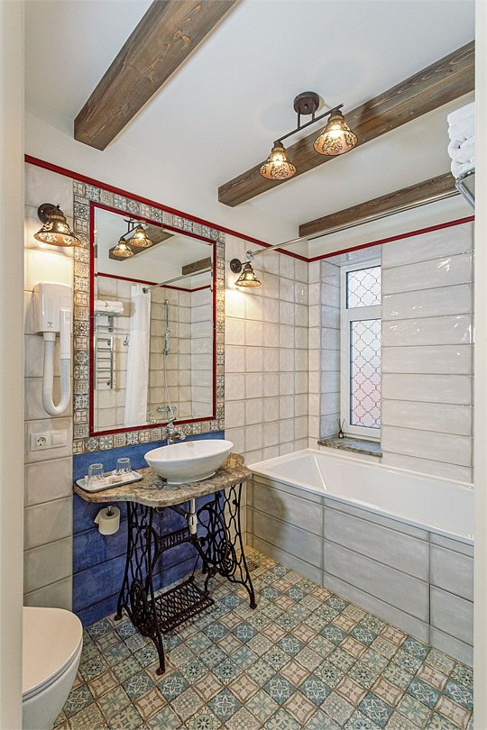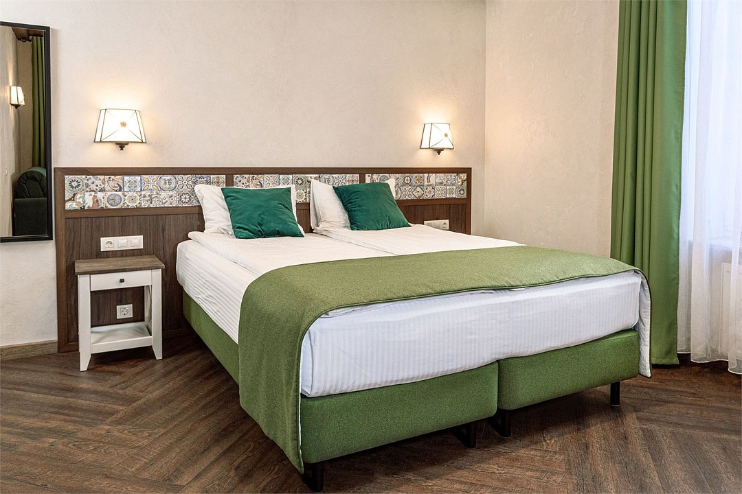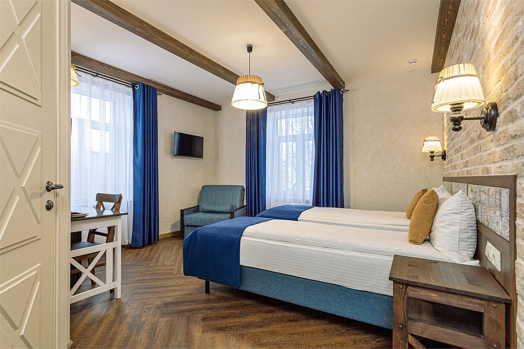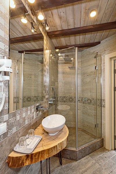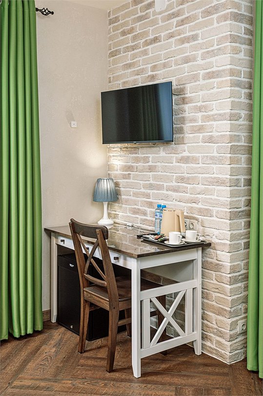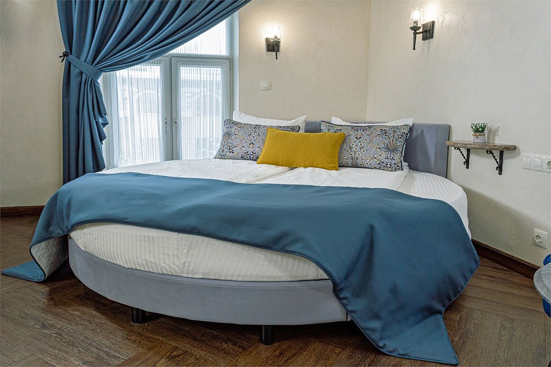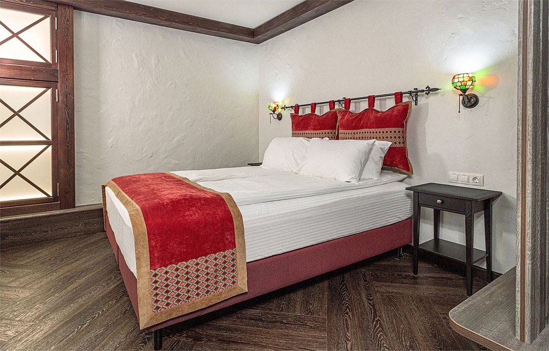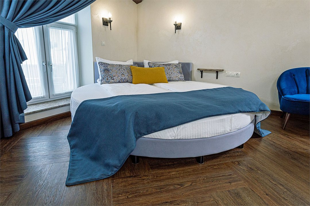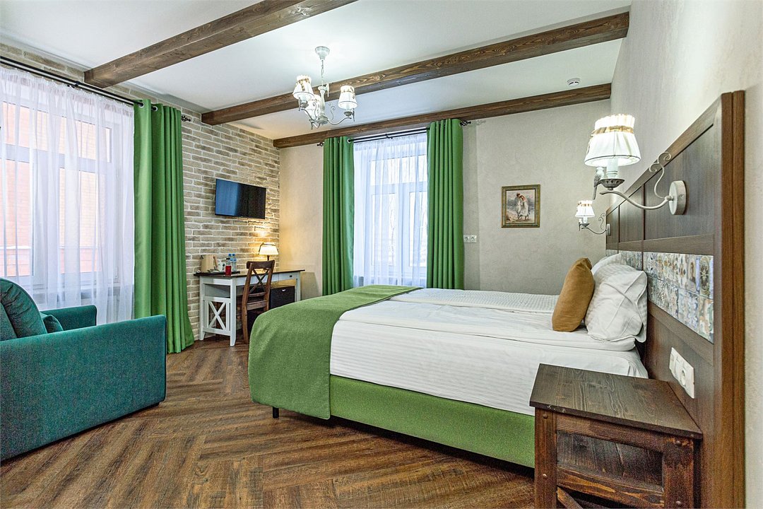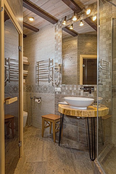 Уютный номер в "Рустикальном" стиле, с собственной сауной и просторной зоной отдыха. Идеальный номер для комфортного размещения! В номере площадью 36 м² свободно разместятся до 3 гостей . В номере есть все необходимое: удобная большая кровать "queen-size" с ортопедическим матрасом, просторный стол, телевизор со smart TV, уютная зона отдыха, современная ванная комната и собственная сауна. Рустикальный номер отличается особой атмосферой благодаря использованию натуральных материалов, таких как дерево, камень и текстиль с грубой фактурой. Массивные балки и своды из натурального дерева напоминают средневековые деревенские мотивы и придают особую атмосферность данному номеру. Номер в "Рустикальном" стиле находится на цокольном этаже и имеет 2 скошенных окна. Услуга "сауна" оплачивается отдельно от стоимости проживания по Вашему желанию.Услуги и удобства