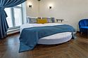 Гранд Люкс - это премиальный номер с дизайнерским уникальным интерьером, который представлен в единственном экземпляре. Общая площадь номера составляет 45 кв. метров и разделена на 2 зоны: просторная спальня с круглой кроватью «Super king size», джакузи с гидромассажем и электрическим камином, а так же кухня - гостиная с панорамным окном на историческую улицу города Гатчины. Номер располагает всеми удобствами для комфортабельного отдыха: шторами, не пропускающими дневной свет "блэкаут", кондиционером, Smart TV, холодильником, чайником, ортопедическим матрасом средней жесткости, сатиновым постельным бельем, мягкими махровыми полотенцами, халатами, плотными мягкими одноразовыми тапочками, зубным набором, шапочкой для душа, расческой, гелем для душа, шампунем, мылом. холодильником, чайником, чайным набором с тремя сортами чая, кофе, сахаром, стаканами, бутилированной водой. Так же номер оснащен просторным санузлом.Услуги и удобства