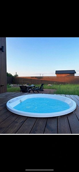 Личное горячее джакузи на свежем воздухе с температурой с постоянным подогревом и фильтрацией. Входит в стоимость проживания.