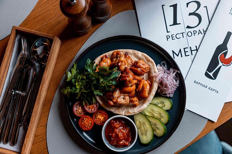 В здании Barn House Guest расположен уютный ресторан, вместимостью до 45 человек. Более 60 блюд европейской кухни, тематические мероприятия - это и многое другое ожидает в ресторане “13”. В выходные работает до 23 часов (пт - вс).