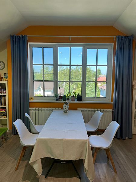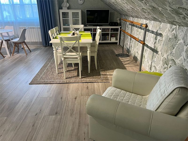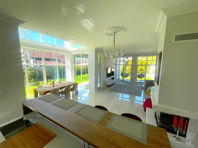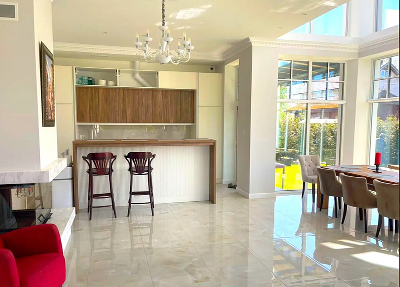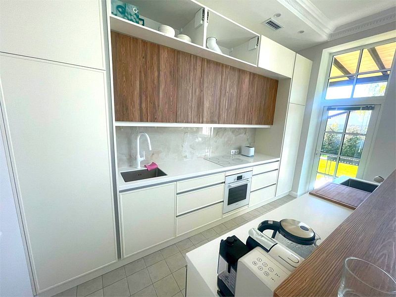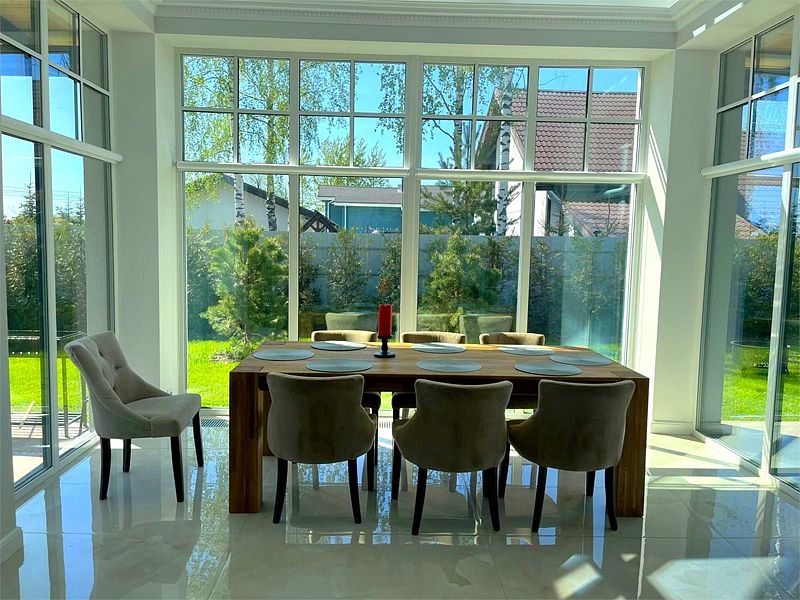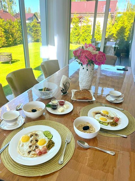 В общей зоне находится полностью оборудованная кухня и столовая с панорамными окнами, где каждое утро вас ждет вкусный и сбалансированный завтрак. Здесь вы сможете насладиться питательными блюдами, которые подарят заряд бодрости на весь день, создавая атмосферу домашнего уюта и тепла.