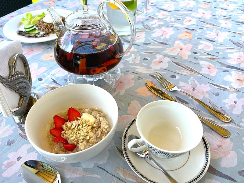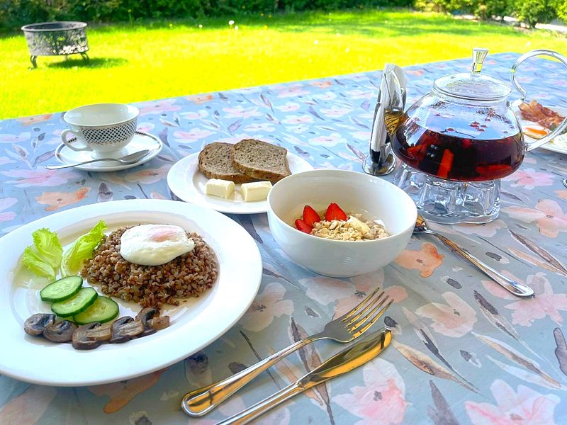 В зависимости от выбранного тарифа, завтрак может быть включен в стоимость проживания или же предоставлен за отдельную плату в размере 600 ₽. Кроме того, по согласованию и предварительному заказу могут быть предоставлены обеды и ужины.