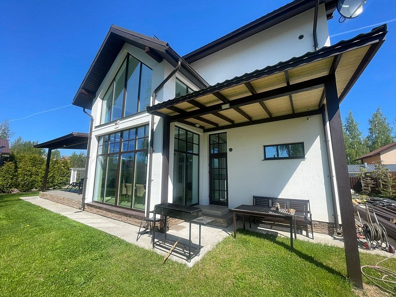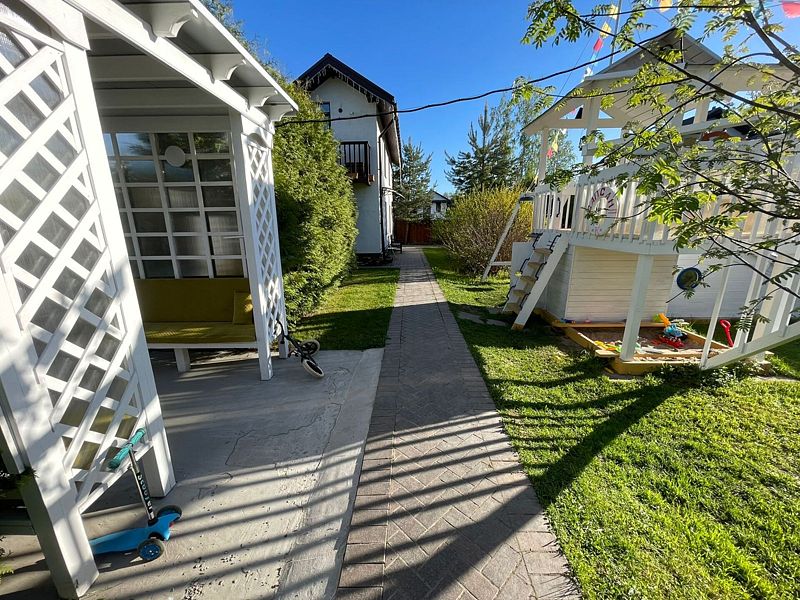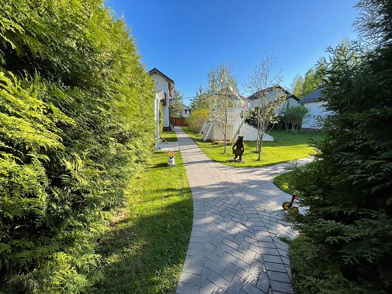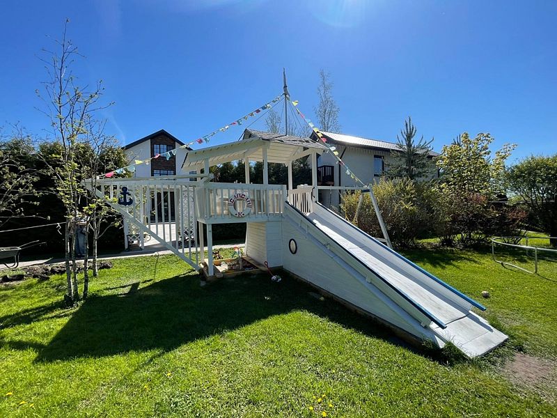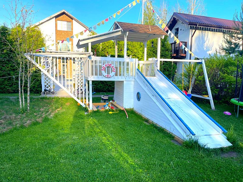 У дома собственная огороженная территория. Здесь предусмотрены гриль зона, терраса с креслами, затененные скамеечки для отдыха, новая, современная и безопасная детская площадка — это целый корабль для юных пиратов.