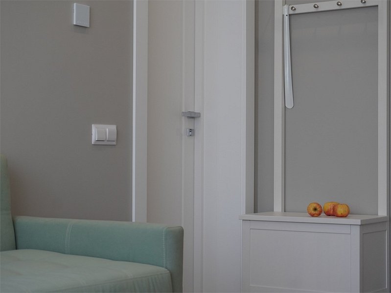 Большие семейный двухкомнатные апартаменты расположены на третьем этаже гостевого дома. В большой спальне — двухспальная кровать, во второй спальне — две односпальные кровати.