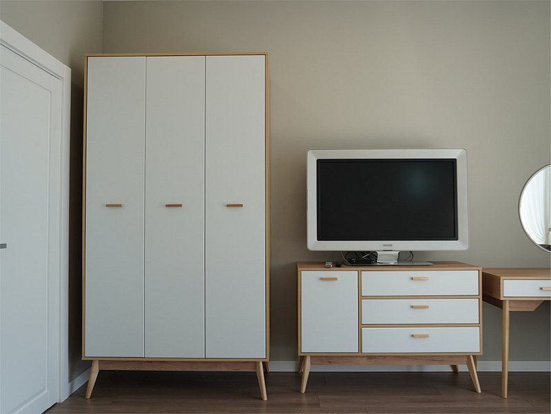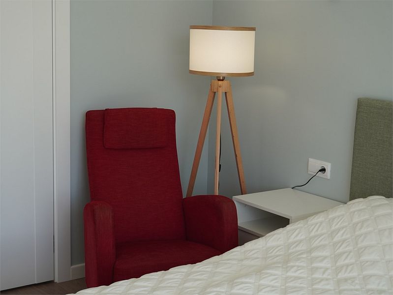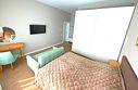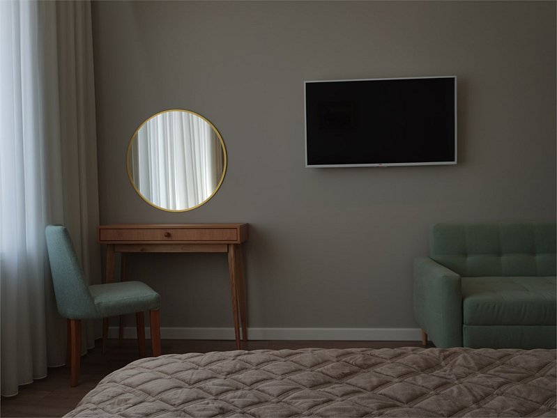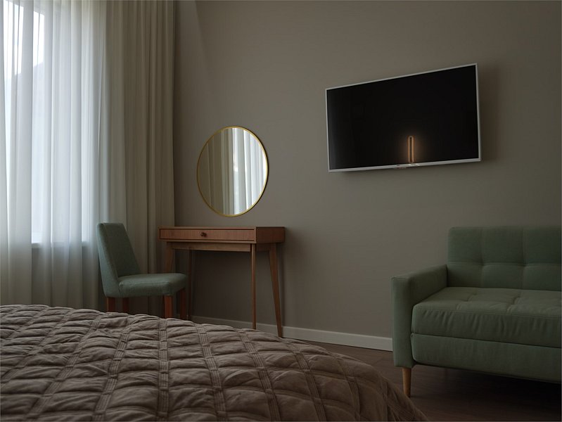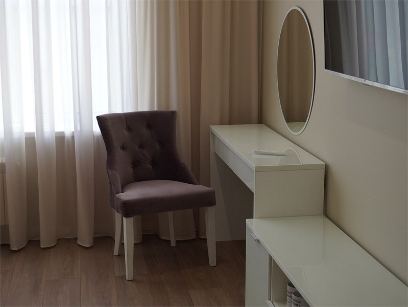 Двухкомнатный номер подходит для полноценного трехместного размещения. В большой комнате находится большая двухспальная кровать, вся необходимая мебель и ванная комната. В маленькой комнате — односпальная кровать.